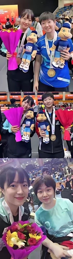 看着金娜英、孙颖莎、王曼昱、申裕斌的照片我不由得想起我朋友说过的一句话,“有点不明白现在的年轻女孩子为何如此钟情于化妆。 世乒赛孙颖莎4比3赢王曼昱卫冕,王曼昱拿亚军。 全运会王曼昱又4比2赢孙颖莎,这俩今年决赛碰六次了,谁赢谁都没定数。 申裕斌世乒赛进第四轮,金娜英双打跟莎昱碰过半决赛。 蒯曼今年冒头快,混双跟林诗栋进过大满贯决赛,成都混合团体世界杯还爆冷4比2赢王曼昱,年轻选手真敢冲。 年底总决赛莎头组合拿外卡,王曼昱蒯曼申裕斌都去单打,明年多哈冠军赛这几个还参赛,全年比赛没断过,状态都猛。 金娜英马斯喀特站单打进四强,双打拿亚军,韩国选手也挺能打。 你说俩顶尖选手总打决赛,下次谁赢的概率大?