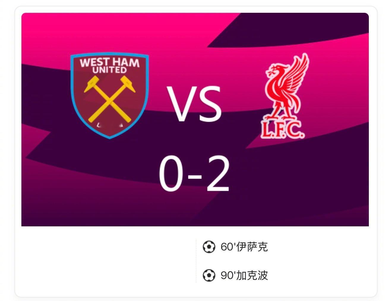 【战报:西汉姆联0比2利物浦,伊萨克首球萨拉赫DNP】上半场伊萨克近距离打门遭阿雷奥拉神扑,下半场伊萨克推射破门获红军生涯首粒进球,随后帕奎塔抱怨连获两张黄牌被罚下,加克波补时阶段破门锁定胜局,最终利物浦2-0战胜十人西汉姆联。