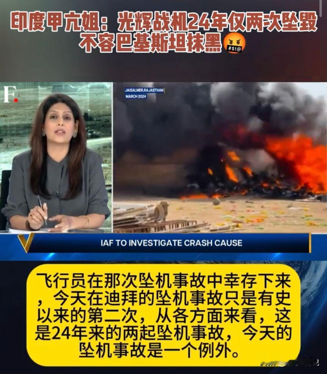 果然是印度!飞机可以摔,嘴上不能软:“光辉”24年来仅摔2次,战机不容巴基斯坦抹黑! 麻烦看官老爷们右上角点击一下“关注”,既方便您进行讨论和分享,又能给您带来不一样的参与感,感谢您的支持! 迪拜航展上,印度的“光辉”战机突然坠毁的画面,在社交媒体上瞬间炸开了锅。 印度国内一边为事故焦头烂额,一边又迅速将话锋指向巴基斯坦,仿佛这件事根本不是技术问题,而是别人抹黑的阴谋“光辉”战机服役24年来仅发生过两次坠机事故,这一说法被官方和媒体反复强调,仿佛在告诉世人:摔飞机可以,嘴上不能软。 官方强调“光辉”战机历史悠久、服役稳定,甚至把它描绘成印度空军的骄傲与象征。 但细看交付量与事故记录,这套神话就显得有些漏洞百出。印度空军真正服役的“光辉”战机数量并不多,坠机事故比例相对不低。 24年仅两次?可细数过去的公开报道,尤其是训练和试飞阶段的事故记录,其实远比官方数字要多,这让人不得不怀疑,所谓的“安全记录”,更多是一种政治宣传而非现实反映。 更值得注意的是,在历年的印巴空战记录中,印度空军几乎没有在实战中大规模使用“光辉”。 如果一款战机真的像官方宣传的那么可靠、致命,那么在与巴基斯坦的冲突中,至少应该频繁登场。 但现实是,它的存在感低到几乎可以忽略,这不禁让人思考:印度官方的吹捧,与印度空军实际的信心之间,是否存在明显落差? 印度舆论的反应也很有意思。 一方面,航展坠机事故引发了国内网友的调侃和焦虑,有人直接调侃“24年才摔两次,看来飞机比飞行员还稳”。 另一方面,官方和亲政府媒体则迅速将话题引向巴基斯坦,强调“别国不敢承认的事实”,试图将注意力从事故本身转移出去。 可问题是,无论如何包装,这架飞机的坠毁事实摆在那里,一架服役24年的战机,理应比新机更安全,但现实却告诉人们,稳定不等于万无一失。 实际上,“光辉”战机的设计理念本身就是一个争议点。它号称多用途轻型战斗机,但印度在实际使用中,却更多依赖其他机型执行关键任务。飞 行员训练、维护标准、零部件供应等环节的不稳定,也让“光辉”在空军体系中始终处于尴尬位置:宣传上是主力,实战中却是“可有可无”。 这次迪拜航展的坠毁,或许只是冰山一角,它暴露出的,是印度航空工业长期存在的管理和技术隐患,而不是单纯的“偶发事件”。 巴基斯坦方面的调侃自然不会缺席。社交媒体上,巴方网友一边嘲笑印度战机频繁出事故,一边强调自家战机的“实战可靠性”。 这让印度的舆论更是急于反击,官方声明几乎每一句都带着浓浓的“别抹黑我们”的口吻。 可有意思的是,越是急于辩护,越容易让外界质疑:如果一款战机真的无懈可击,印度为何要动用如此高调的防守策略? 这次事故不仅是一次航展意外,更是对印度“光辉神话”的一次现实冲击。印度想靠口号和宣传掩盖技术短板,但现实不会因宣传而消失。 无论是飞行员训练、战机设计,还是后勤维护,这些看不见的环节,才是战机安全的根本保证。 坠机事件提醒印度自己,也提醒全世界:空中强国的名声,不是靠舆论吹出来的,而是靠实战表现和技术可靠性支撑的。 可以预见,未来几个月,印度国内外对“光辉”战机的争议不会平息。 媒体会继续追踪事故原因,分析技术隐患;网友会继续吐槽官方宣传与现实差距;而印度空军,也必须面对一个不容回避的事实,光辉的光环,并不能掩盖现实中可能存在的风险。 至于巴基斯坦,或许会在舆论上占据一时的上风,但长远来看,这场舆论战只是表象。真正能决定地区空中力量平衡的,还是谁的战机真正可靠、谁的飞行员真正敢飞。 24年仅两次坠机?也许在宣传册上是无可挑剔的记录,但在现实的空战舞台上,可靠性才是唯一说话的标准。 这起事故,留给印度的,不只是舆论压力,还有深刻的反思课题:不要只会在嘴上吹牛,技术和管理缺陷终究会在空中显现。 飞机可以摔,但自信不能假装。否则,再华丽的航展、再高调的宣传,也只是镜花水月。