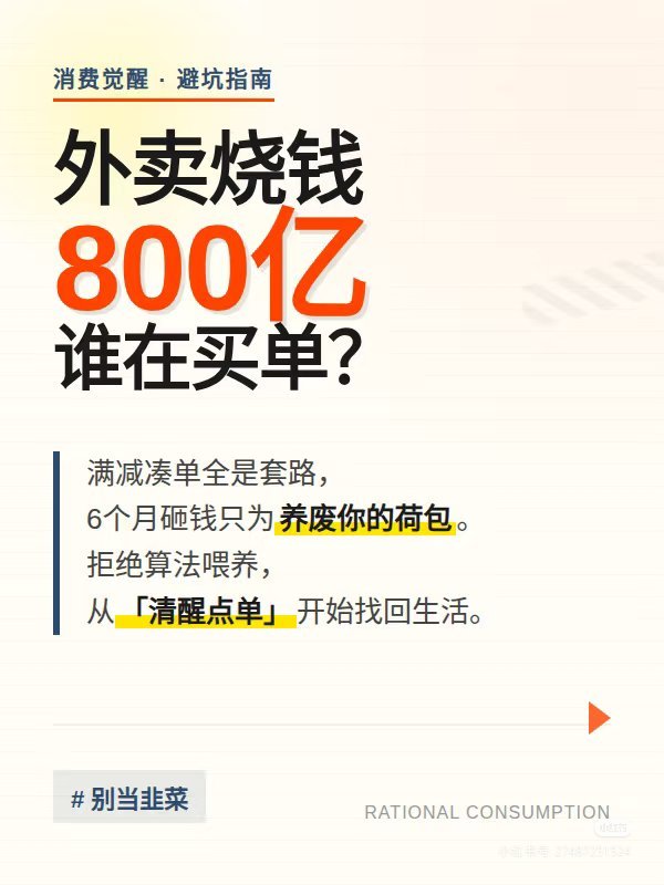 外卖大战6个月烧掉近800亿本来是赚1000亿的,结果只赚了300亿,所以亏700亿?是吗?现在一个月大概会花多少钱在外卖?算一笔自己的外卖账,看看那800亿里,有没有你贡献的一小丢丢😅