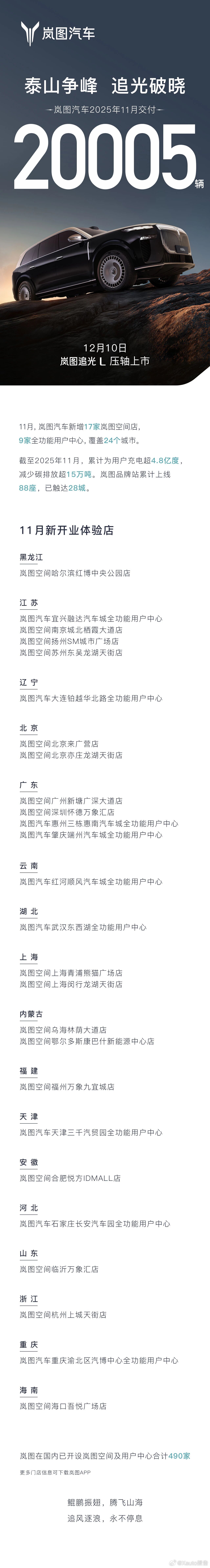 岚图汽车11月交付20005辆岚图汽车2025年11月交付20005辆,1-11月累计同比增长82%。岚图追光L12月压轴上市 。岚图汽车岚图泰山岚图追光L汽场全开