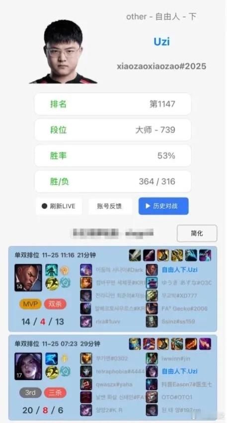 Uzi 复出 连续被传将复出后,Uzi已经四天未登韩服账号uzi要不来明年LPL真就是各个区在粪坑乱斗了