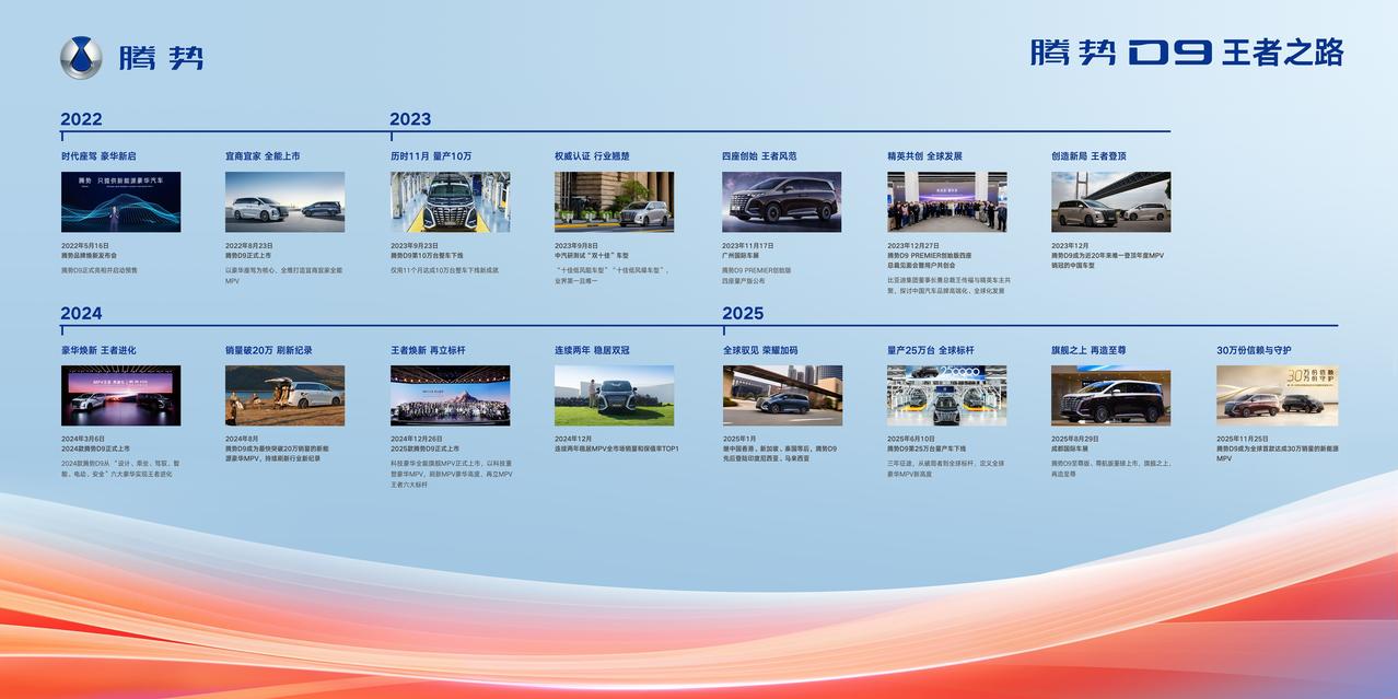 第30万辆腾势D9交付,将进军巴西市场,预售价约合105万人民币 在传统的MPV市场中,长期以来都被合资汽车品牌所垄断。近日,腾势汽车的第30万辆腾势D9正式交付,“九球天后”潘晓婷成为了腾势D9第30万辆车主。从2022年上市至今仅三年的时间,腾势D9就打破了被合资汽车品牌长期垄断的MPV市场,在2023年、2024年腾势D9均获得了国内MPV年度销冠,在今年(2025年)的1-10月腾势D9同样也夺得了同级销量榜第一的成绩。 之所以腾势D9能够在短期内就取得这样的成绩与它始终坚持以用户需求为核心有着密切的关系,腾势D9配备了行业首创的“定眩智能防晕车系统”,解决了家人在出行时尤为担心的晕车问题;其次,腾势D9配备的“隐私声盾”功能则给后排乘客在洽谈工作时提供了更好的私密空间;此外,腾势D9还搭载了云辇智能车身控制系统,配合路面预瞄2.0技术,让车辆在遇到减速带以及坑洼路面时提前做出判断,带来更为舒适的乘坐体验。 除了在国内有着三十万精英车主的选择以外,腾势D9在海外市场同样也有着不错的受欢迎程度,2025年上半年,腾势D9在印度尼西亚、泰国以及马来西亚市场均获得了豪华MPV销量榜榜首的成绩;今年4月腾势D9正式进军欧洲市场;而近日,腾势汽车宣布进入巴西市场,腾势D9在巴西市场的预售价约合105万人民币。 就以目前的表现来看,腾势D9未来不论是在国内还是海外市场均还有着不可估量的发展势头。