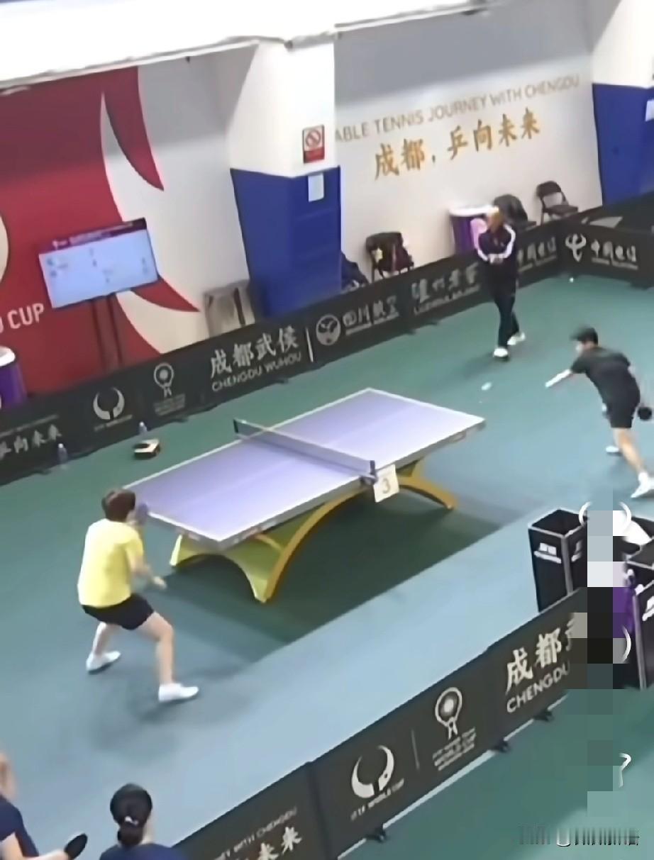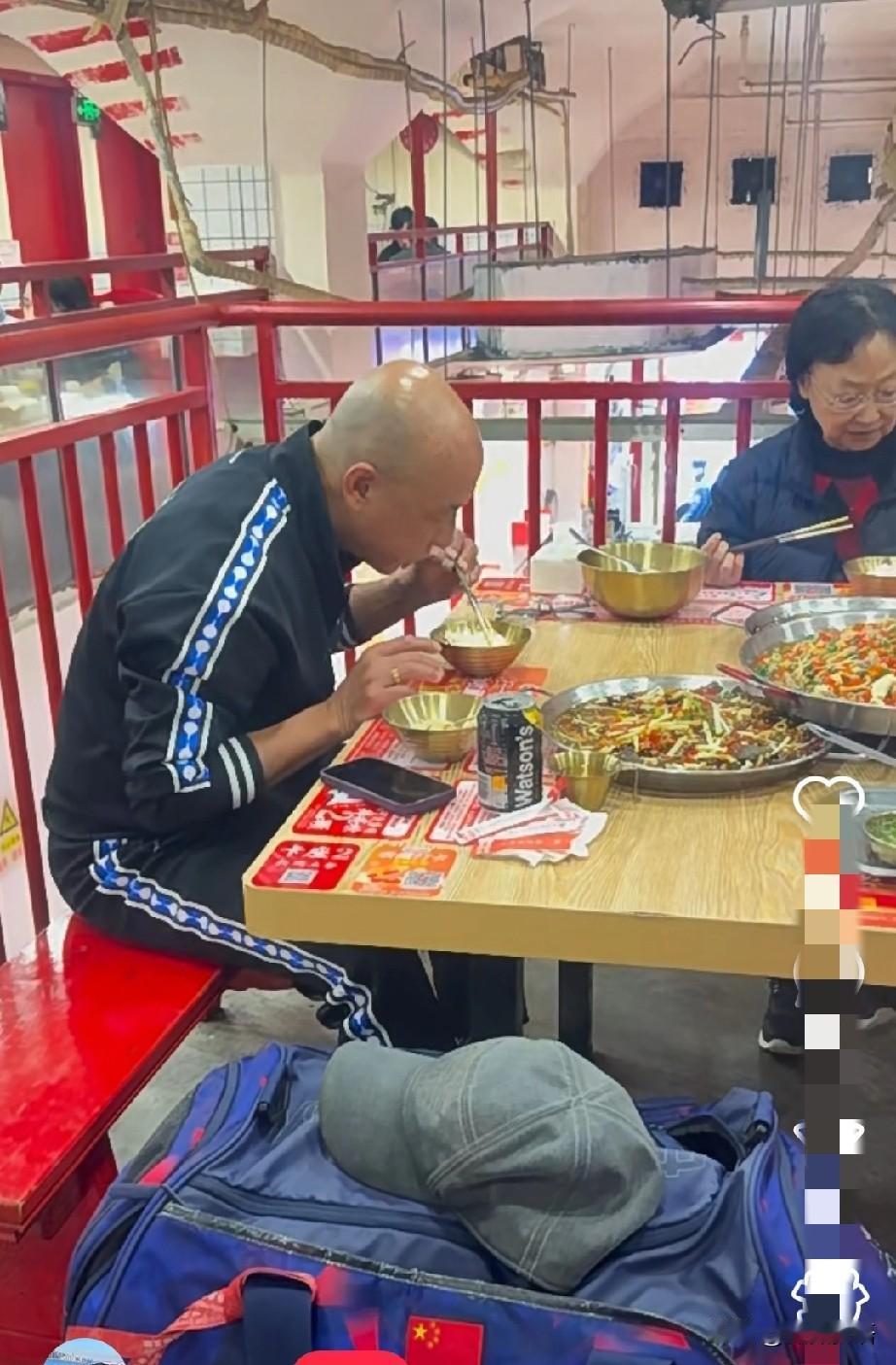 肖导这头是真的很亮啊。 今年成都混团的比赛,场外只能坐两名教练,昨天中国队第一场比赛的场外教练是王皓和马琳,肖导是坐在观众席看比赛了。今天上午肖导带着林诗栋、蒯曼在练球了,看来今晚国乒混双要上栋曼组合了,因为接下来的WTT总决赛栋曼组合也要参加混双的比赛,国乒两对混双会轮流上场了吧。 感觉林诗栋和蒯曼也有一段时间没一起打混双了,全运会的时候蒯曼是和陈垣宇一起打混双,拿到了全运会混双亚军,这次在成都混团的比赛,还是栋曼组合一起打。训练结束后,肖导去吃饭了,现在才发现肖导是左手拿筷子了,他低头吃饭的时候,看到肖导的头是真亮啊。 肖导在那吃饭的时候,有人认出来他,还喊了一声肖导,肖导还回应了一下。看着这菜份量真足,看到有四川的网友说自贡菜就是这样,里面的花椒辣椒多。这菜看着很有食欲,就是很辣,晚上的比赛不知道场外教练会不会换其他人上场。
