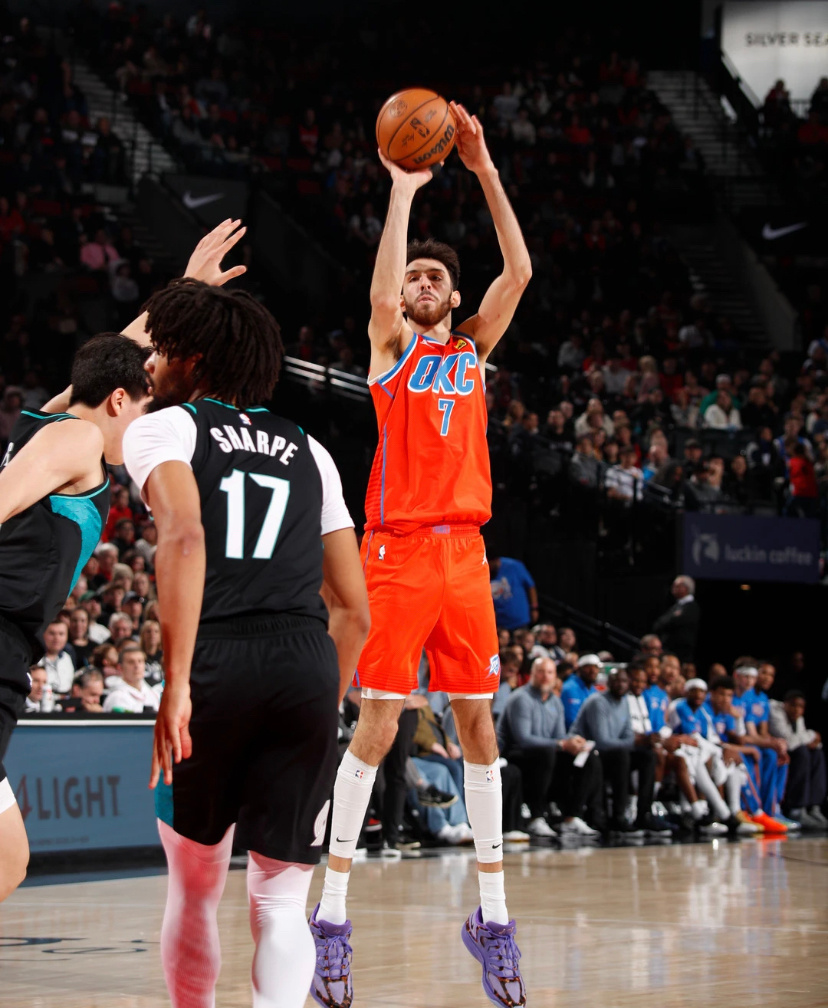 雷霆123比115战胜开拓者在今天的NBA常规赛中,雷霆战胜开拓者并豪取12连胜,将赛季开局战绩提升至20胜1负,成为NBA历史上第四支达成此成就的球队,与1969-70赛季的尼克斯、1993-94赛季的火箭等队伍并列。雷霆vs开拓者本场比赛过程胶着,雷霆前三节以85-87落后。末节成为转折点,雷霆单节打出38-28的攻势完成逆转。决胜时刻,亚历山大在最后4分钟连中4记中投,独得8分稳定胜局,全场贡献26分4篮板5助攻。霍姆格伦效率出色,拿下19分9篮板并送出3次盖帽,替补登场的米切尔也贡献17分。雷霆凭借这次比赛的强劲表现,继续稳居西部榜首