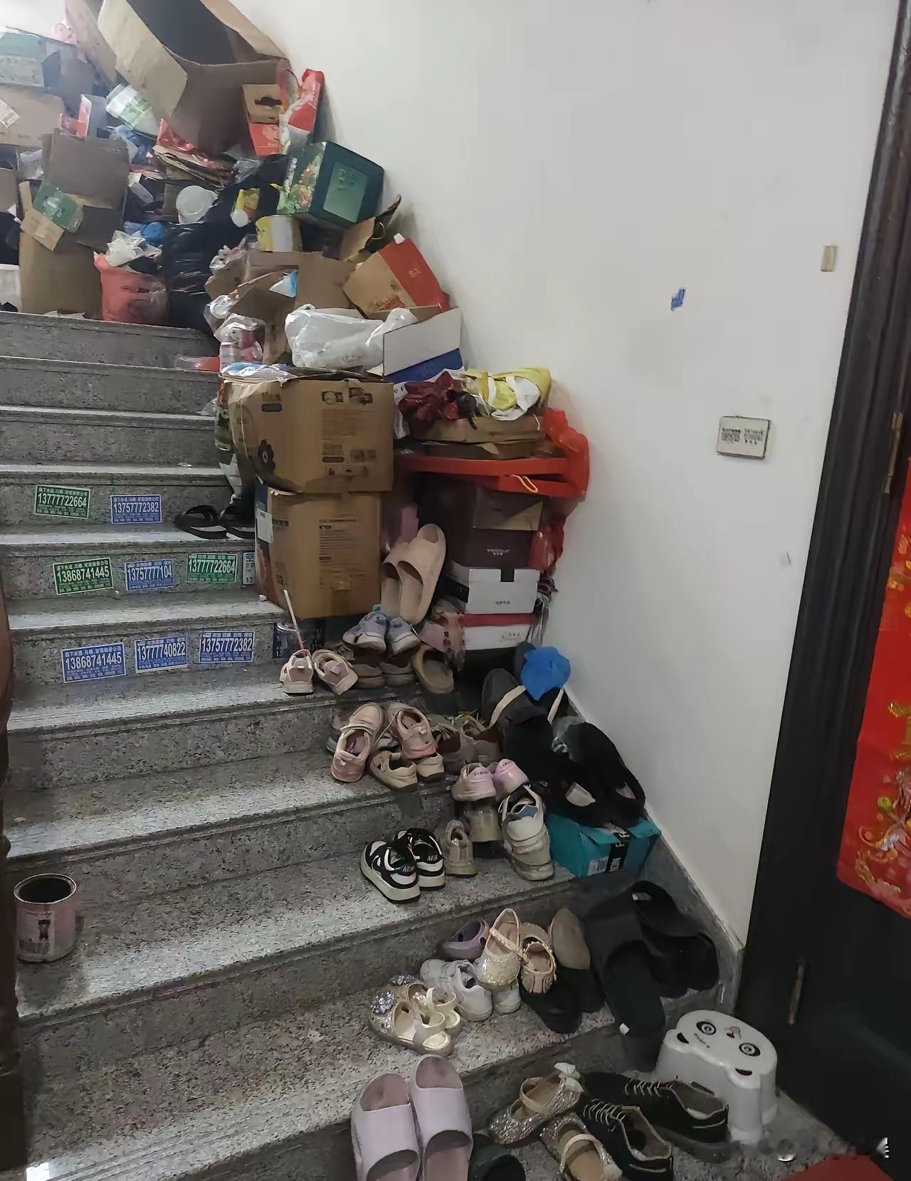 这邻居太没有素质了,东西都在楼道堆着,而且是越堆越多。他把这半截楼梯堆了一半,走路都费劲了。这要是有个紧急情况,如火灾等,这个楼道走人都费劲,太危险了吧,严重危害了大家的安全。业主向物业反应了多次,但是仍旧没有效果,这可怎么办? 邻居的糟心事 住户楼道