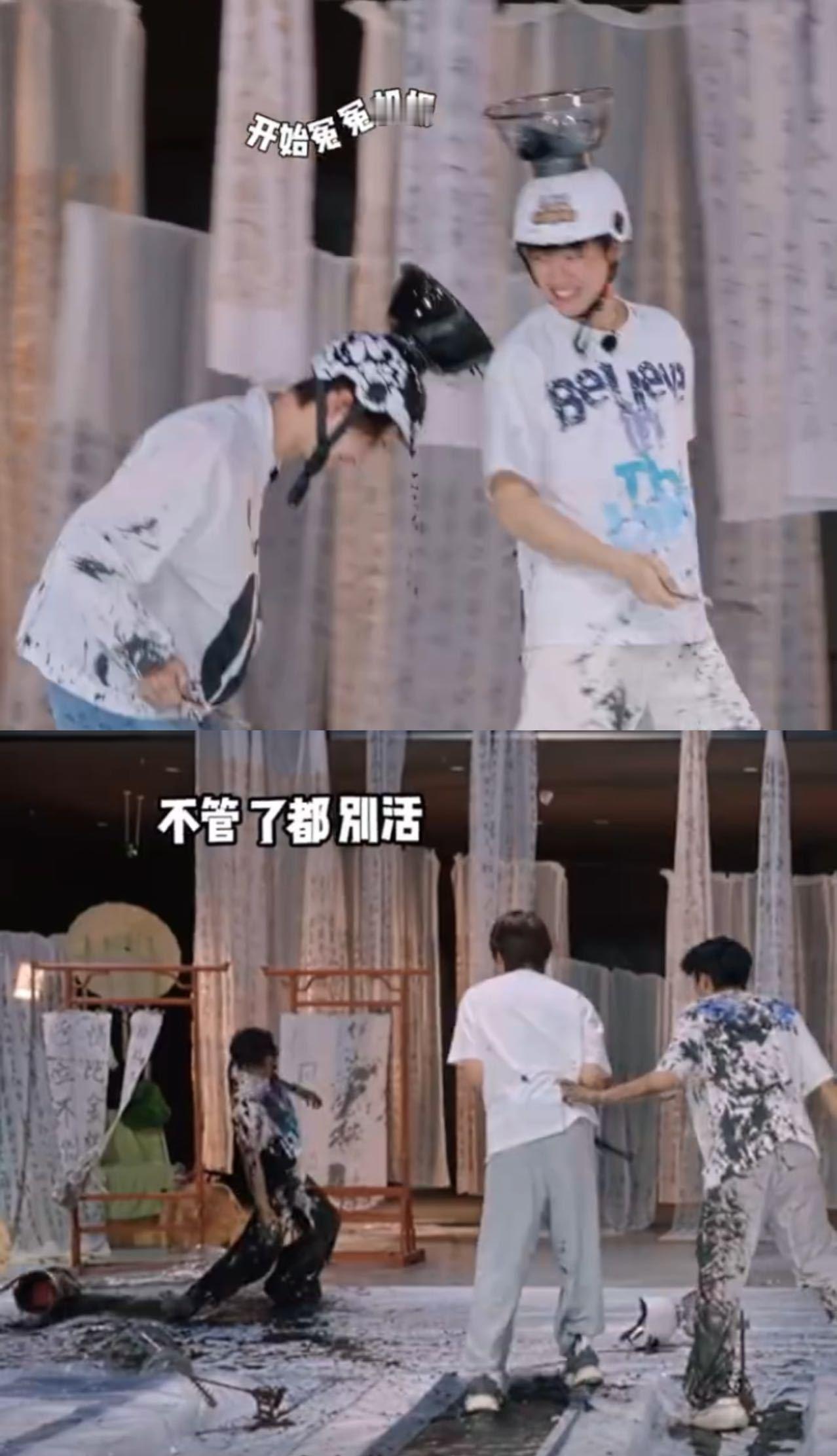 十个勤天全都是泡墨 陡门“地士尼”超会整活!泼墨混战太疯癫,陈少熙、何浩楠、王一珩组“搞事天团”,宣纸秒变艺术废品,少熙衣服彻底“沦陷”,还带小何“攻击”卓沅,泡沫流超治愈!
