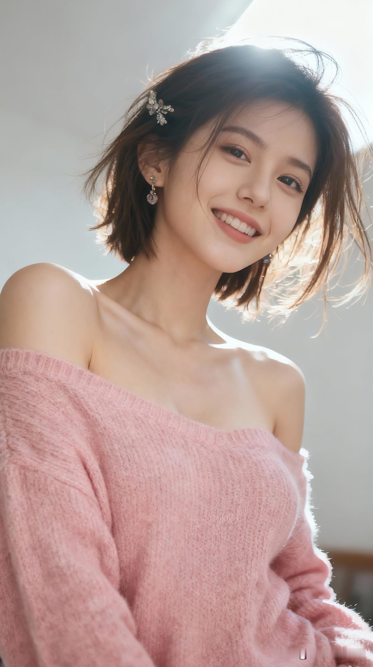 粉衣美人笑,花枝拂面来。什么样的美女才是最美的呢 温柔粉毛衣,甜美笑容,元气满满的一天!🌞💖