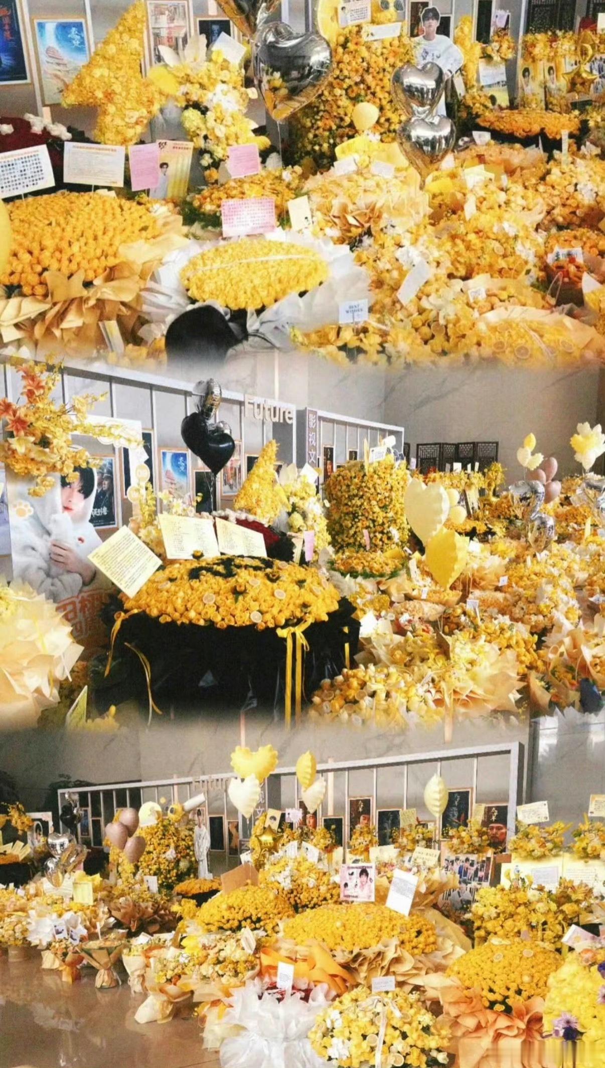 田栩宁粉丝送的祝福花束被黄色花海包围,田栩宁今天又幸福了
