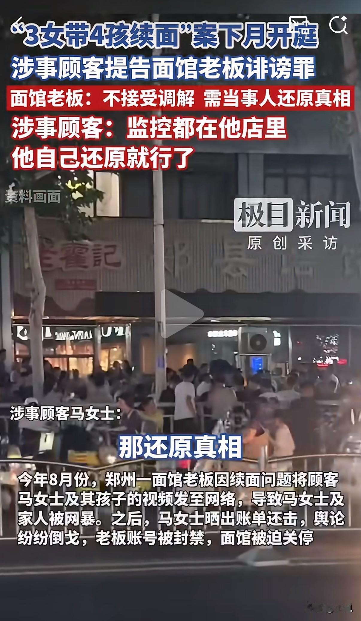 “他挣他的钱,我维我的权。”被网暴的顾客回应老板开新店,官司照打不误。 还记得三个多月前,郑州那家面馆里闹得沸沸扬扬的“续面”事件吗?当时,老板霍某发视频,说三位女士带了四个孩子,七个人只点了一碗面,还想第三次免费续面。他话里话外暗示顾客占便宜,只消费了七十多块。 视频一下子火了。结果呢?当事顾客马女士晒出了账单,清清楚楚140多块钱,里面还有网上团购的羊排、羊肉串。舆论瞬间反转。大家感觉被利用了,怒火冲向了老板。他的社交账号被封,面馆也开不下去,关了门。 到了9月底,老板霍某发视频道歉了。他说给当事人造成了伤害,会亲自赔礼道歉并做出补偿,还撂下一句话:“决定永久闭店。” 但事情并没完。马女士那边说,她根本没等来老板当面或电话里的一句道歉。与此同时,她和家人陷入了更深的痛苦。从去年8月事发到现在,两个多月了,网络上侮辱、谩骂他们的声音从来没停过。有人说她故意敲诈,拿孩子当工具,还有人说她“卖惨”。这些恶意评论塞满了她的后台,让她一直处于抑郁状态。她说,大人孩子的脸都被曝光了,身心受到严重伤害。 于是,马女士选择了法律途径。她的民事诉状已经递交法院,案由是侵权责任纠纷。她表示要状告老板诽谤,而且不会和解。这个案子,定在12月2日,也就是明天,在郑州市中原区人民法院召开庭前会议。 就在这个节骨眼上,新情况出现了。 11月30日,有网友发视频,标题是“郑州西郊卷王老霍记又回来了”。视频里,一家饸饹面馆门口,一个疑似老板霍某的人,正站在热气腾腾的大锅前招呼客人。记者问周边商户,商户说旁边确实新开了一家面馆,11月30号第一天开张,但老板是谁不清楚。 有意思的是,记者去查了企业信息。霍某名下曾有4家企业,3家都注销了,只剩1家存续。而且,查不到和新店地址相关的任何企业信息。更早之前,还有人发现霍某以“前80后失败餐饮人”的简介,开了新的社交账号,在视频里谈事件影响,说“将为自己的错误买单”。 一边是法院即将开庭,一边是疑似的新店开张。这事怎么看都透着点蹊跷。 记者联系上顾客马女士,把老板可能开新店的消息告诉了她。马女士的回应挺平静,她说:“祝他生意兴隆。” 她还补充道:“这是我的真实想法,他挣他的钱,我维我的权,不冲突。” 至于第二天的庭前会议,她没有再多说。 一场因“续面”引发的纠纷,从网络骂战发展到对簿公堂。一方说持续被网暴,身心受损,坚决维权;另一方道了歉、关了店,如今却又疑似重操旧业。 法律自有法律的判决。但这背后,网络的声浪如何轻易毁掉普通人的生活,一句“永久闭店”的承诺有多少分量,生意和名誉的创伤该如何真正修复,留给人们思考的,远比一碗面要多。 来源:极目新闻