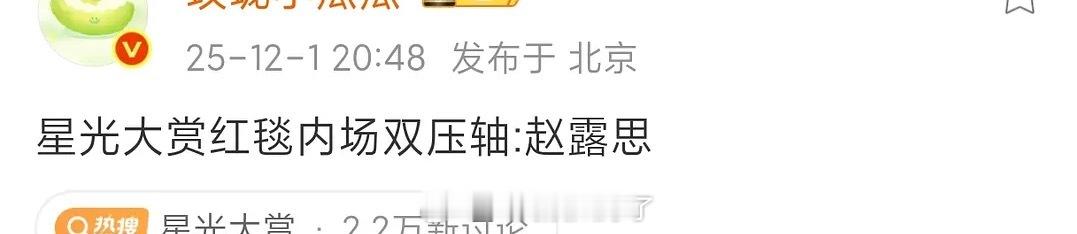 瓜主说星光大赏红毯和内场的双压轴是赵露思。可信吗?星光大赏