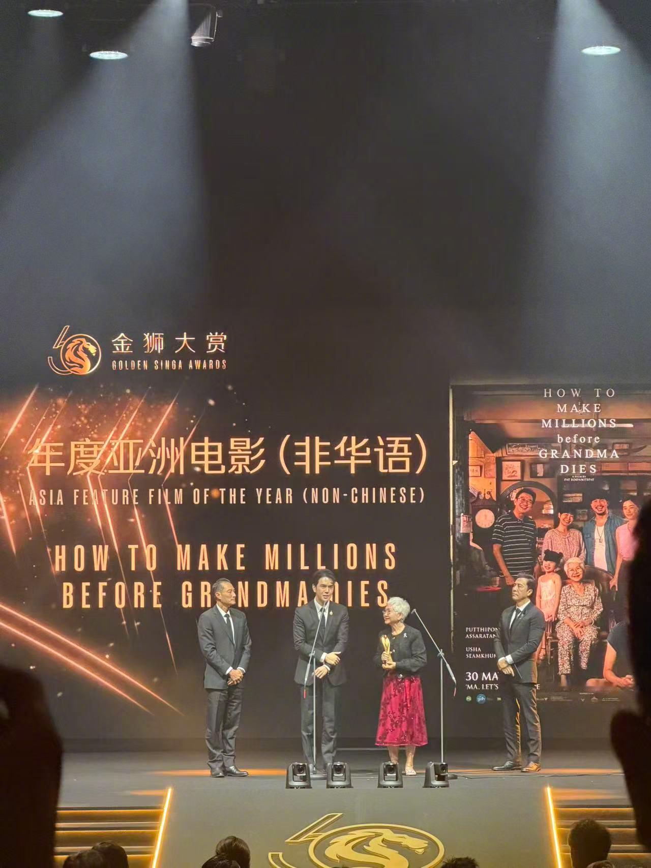 宋佳金狮大赏最佳女主角刘青云金狮大赏最佳男主角首届新加坡国际华语电影金狮大赏奖项颁发,《破·地狱》获最佳电影,刘青云获最佳男主角,宋佳获最佳女主角。最佳电影:《破·地狱》最佳导演:翁子光、区焯文《爸爸》最佳男主角:刘青云《爸爸》最佳女主角:宋佳《好东西》 最佳男配角:朱柏康《破·地狱》最佳女配角:钟楚曦《好东西》最佳新人:李珞桉《不说话的爱》最佳摄影:郑兆强《九龙城寨之围城》最佳剧本:翁子光《爸爸》最佳视觉效果:许明军《唐探1900》最佳原创电影音乐:丁可《爸爸》最佳原创电影歌曲:《普渡众生》(《破·地狱》)最佳音效:姚俊轩、张文恺、杜本立《九龙城寨之围城》最佳剪辑:石缮荥《爸爸》最佳美术设计:麦国强、周世鸿《九龙城寨之围城》最佳造型设计:张世杰《唐探1900》最佳动作设计:谷垣健治《九龙城寨之围城》年度亚洲电影(非华语):《姥姥的外孙》该赏旨在表彰在华语电影过去一年中的优质作品,肯定华语电影从业人员的贡献和付出,鼓励华语电影的创新与进步。首届评委会由甄子丹担任主席,张同祖、李少红、雷楚雄、徐侠昌、袁咏仪、郝蕾、魏德圣、方文山担任评委。