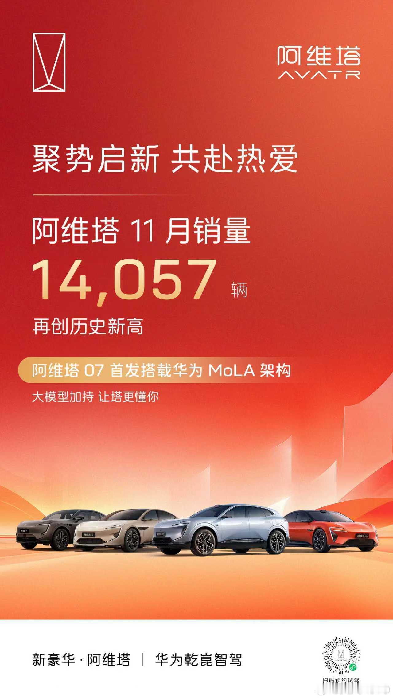 新华AUTO:阿维塔11月销量14057辆再创新高聚势启新,势头强劲阿维塔连续9