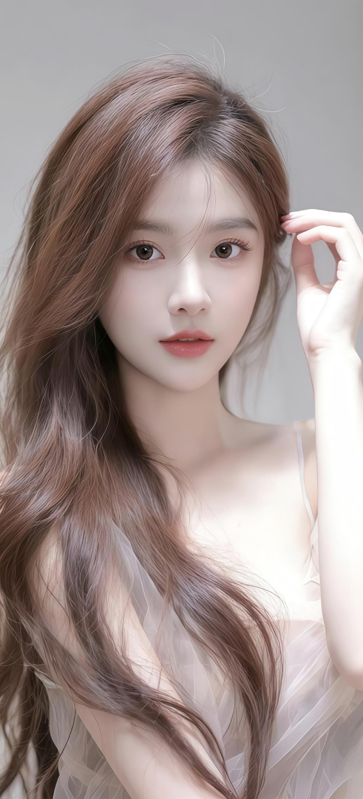 素面含情映日红,轻盈体态自玲珑。 回眸一笑春波绿,举步微摇秀发风。 玉骨冰肌凝雪