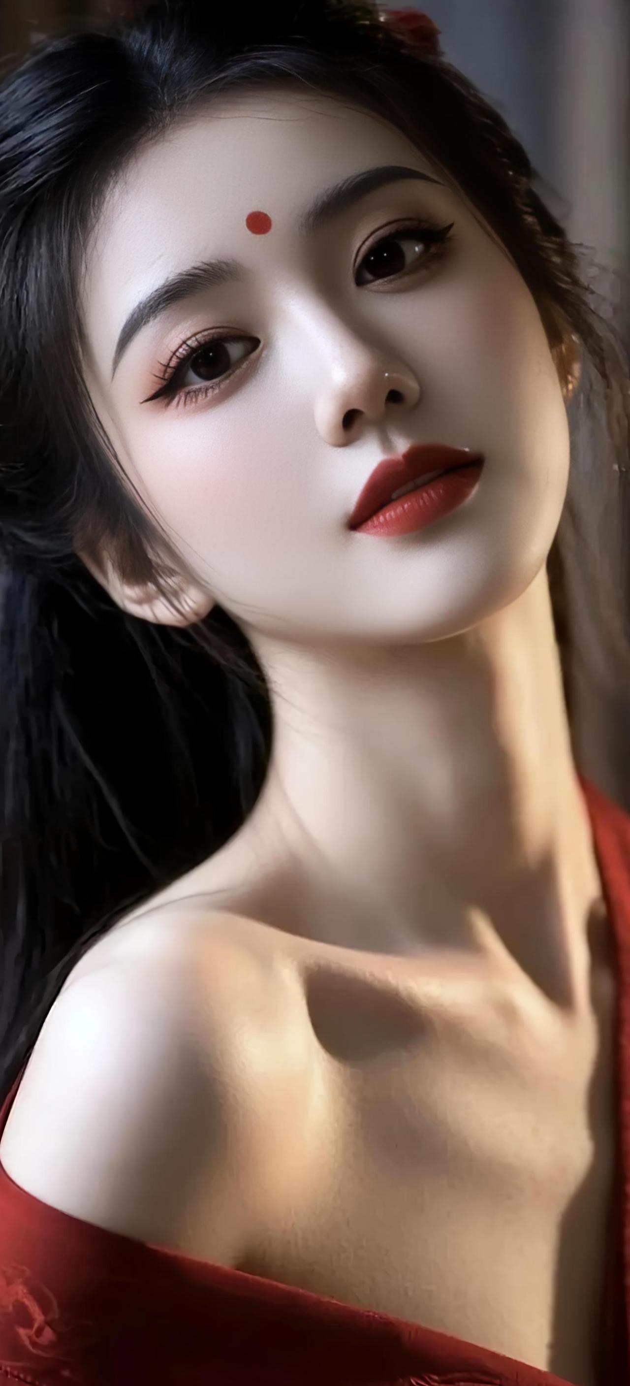 魅影翩跹夜未央,幽香暗度绕回廊。 轻纱半掩芙蓉面,玉指微挑琥珀光。 一笑倾城魂欲