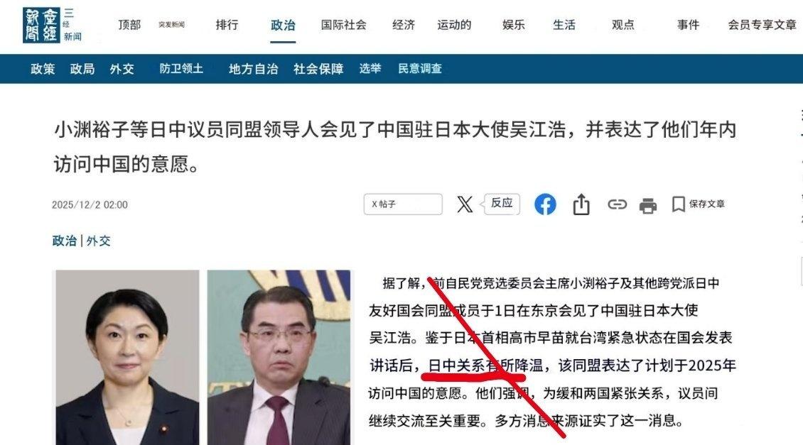日媒自说自话,声称在高市早苗就其挑衅言论在国会发表演讲后,“中日关系有所降温”。 ➤在小日子眼里,是不是只要没达到6000℃,都算“降温”?高市早苗意欲何为热点观点