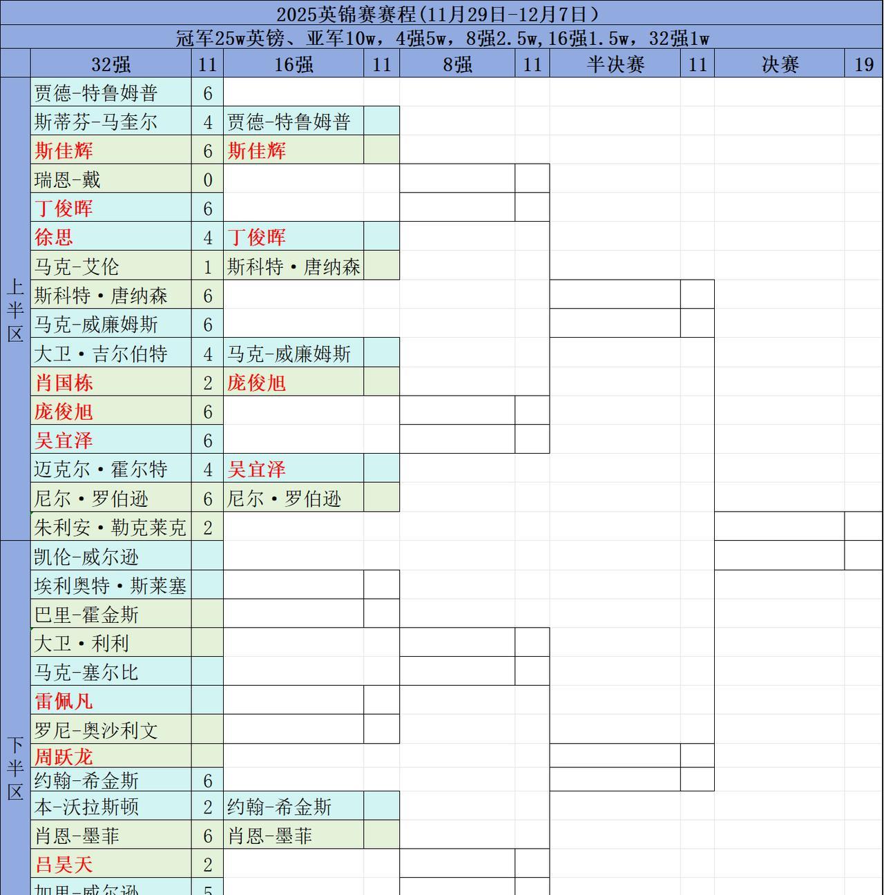 丁俊晖的对手浮出水面,马克-艾1-6爆冷不敌斯科特·唐纳森止步首轮! 2025斯诺克英锦赛今日凌晨(2025年12月2日)刚刚结束一场比赛,斯科特·唐纳森打出两杆50+(62、52),马克·艾伦打出单杆57分,上半场斯科特·唐纳森3-1领先马克·艾伦,中场休息后斯科特·唐纳森连胜三局,最终6-1战胜马克·艾伦,晋级16强,接下来,将与中国龙丁俊晖争夺八强。 截至今日凌晨,已经晋级16强的选手有:斯佳辉、庞俊旭、吴宜泽、赵心童、丁俊晖、张安达。另外,周跃龙和雷佩凡今晚出战争夺16强。 #2025斯诺克英锦赛##英锦赛##丁俊晖#