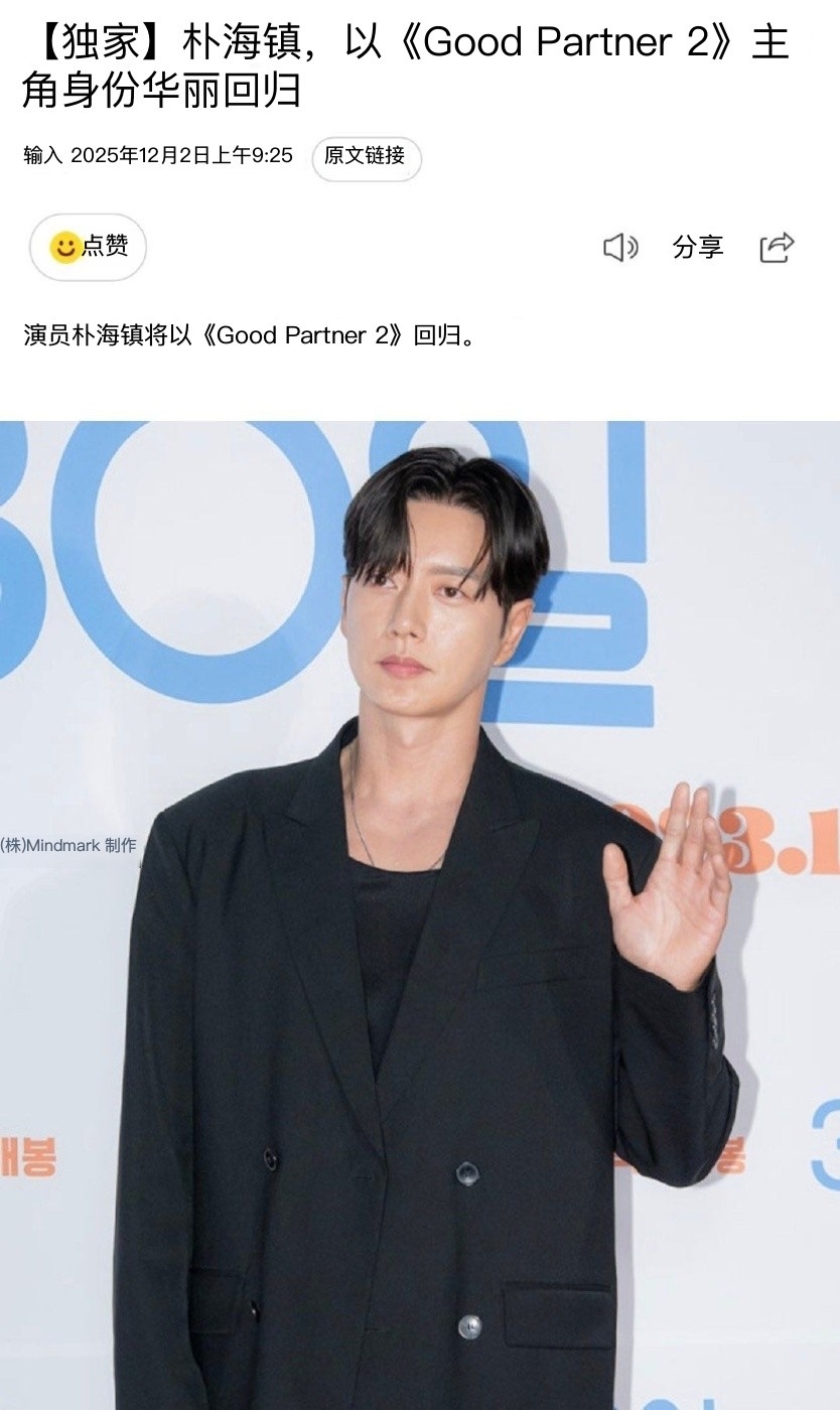 朴海镇或将合作张娜拉、金惠允出演《好搭档2》男主,终于要出来演戏了吗!上次拍戏还是2023年,p2是他近期状态,完全法拉利级别的朴海镇终于出来演戏了朴海镇或将合作张娜拉金惠允