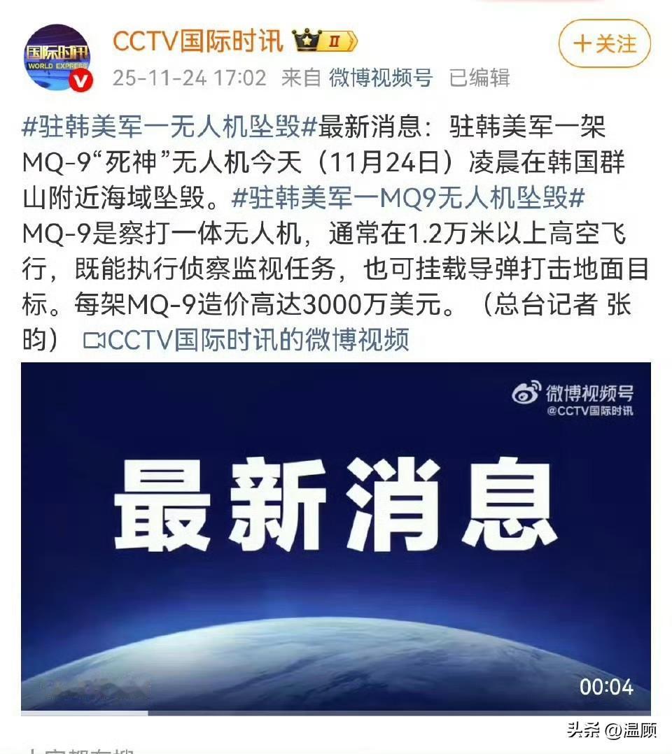 MQ-9无人机坠海内幕曝光:美军承认是自己击落,称疑似被某国干扰! 当地时间2025年11月24日凌晨,美军一架MQ-9无人机在黄海海域突发失控坠毁,这架价值3200万美元的“空中侦察利器”,刚从韩国群山空军基地起飞6小时就彻底“失联”,最终被美韩联合击落沉入海底! 这架隶属于美军第431远征侦察飞行队的MQ-9,原本肩负着对黄海某国海军演习的侦察任务,却在飞行途中突然偏离航线,径直闯入韩国领海。为防止机身搭载的AI自主作战模块、先进侦察设备等核心技术泄密,同时避免威胁民航安全,美军紧急联合韩方启动击落程序,全程未发生直接军事冲突。 美军后续披露的调查报告中,首次提及“外部电子干扰”可能是失联主因!MQ-9的抗干扰能力向来被美军吹嘘为“同级顶尖”,如今却栽在黄海的“电子迷雾”里,是某国电子战实力已突破美军防御阈值,还是美军为渲染“地区威胁”自导自演的“甩锅戏码”? 坠机后美军一边急着打捞核心设备(至今无果),一边忙着“自锤”击落行为、暗示“外部干扰”,既怕高端技术外流,又想借此事强化“亚太安全威胁”叙事,为其军事存在找足借口。