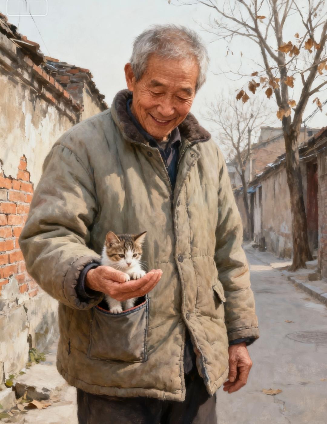 破防了!街头一幕看哭全网:老人从棉袄里掏出小猫,口袋里藏着最暖的善良 寒风中,一位头发花白的老人缓缓停下脚步,颤抖着双手拉开棉袄拉链,小心翼翼地从怀里掏出一只蜷缩的小猫——这一幕近期在街头被路人抓拍,迅速刷爆社交平台,无数网友看完直呼“破防了,这才是冬天里的光”。 画面中,老人穿着洗得发白的旧棉袄,领口和袖口都磨出了毛边。他轻轻托着小猫,布满皱纹的手掌温柔地抚摸着猫咪的脊背,嘴里还小声念叨着“不怕不怕,到家了”。据目击者透露,当时气温低至零下,这只流浪小猫在路边冻得瑟瑟发抖,老人看到后立刻脱下外套,把小猫紧紧揣进怀里,用自己的体温为它取暖。 其实这样的温暖瞬间并非个例。此前就有网友拍到,有老人用蛇皮袋背着生病的小猫去宠物医院,解开袋口时轻轻呵护的模样;还有老人从衣服内层口袋里掏出零钱,一点点喂给街头的流浪猫。他们或许生活并不富裕,穿着朴素,却愿意把仅有的温暖分给这些小生命。 老人怀里的小猫,藏着最纯粹的善良;衣服里的温度,胜过世间所有奢华。在这个快节奏的时代,这些不经意的温暖瞬间,总能戳中人们内心最柔软的地方。愿每一份善良都被温柔以待,愿每一个小生命都能被世界好好呵护。 你被这一幕打动了吗?欢迎在评论区分享你的感受。