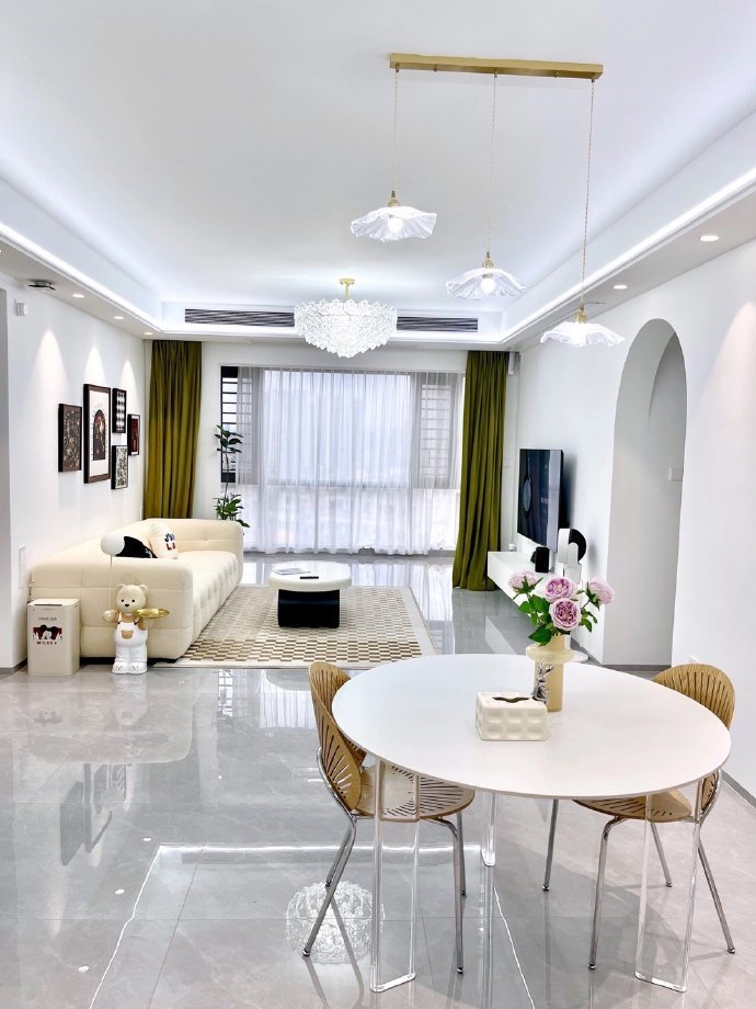 弧形墙+悬浮柜+拱形造景,颜值与功能并存。