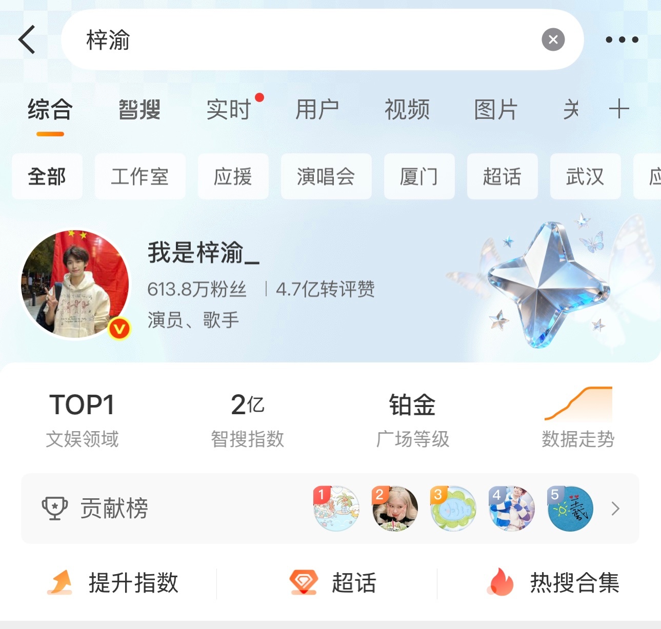 梓渝智搜指数破2亿,以倍数碾压第二名田栩宁,YUNI们太厉害了,手搓这个指数,梓