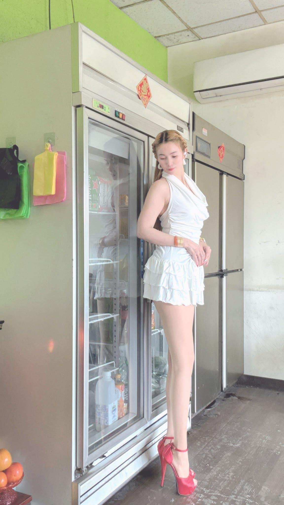 高圆圆旁边这是谁啊??身材好好啊,就是这个裙子的布料……