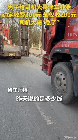 修车费约定300却只收200,司机急了:这钱必须给够! 陕西咸阳的公路边,一场关于修车费的“拉锯战”暖到了不少人。修车师傅和司机大哥约定补胎修车收300元,可结算时师傅只肯收200,理由是“你跑车不容易”。 司机大哥却急了,摆手直言“说好的300就300,哥说出的话一就是一”。他深知跑车不易,却更看重诚信,最终坚持把300元足额给到师傅。 这短短几句对话,藏着最朴素的善良与担当。在快节奏的生活里,这份“说到做到”的诚信和换位思考的体谅,像一股暖流,让人觉得踏实又暖心。