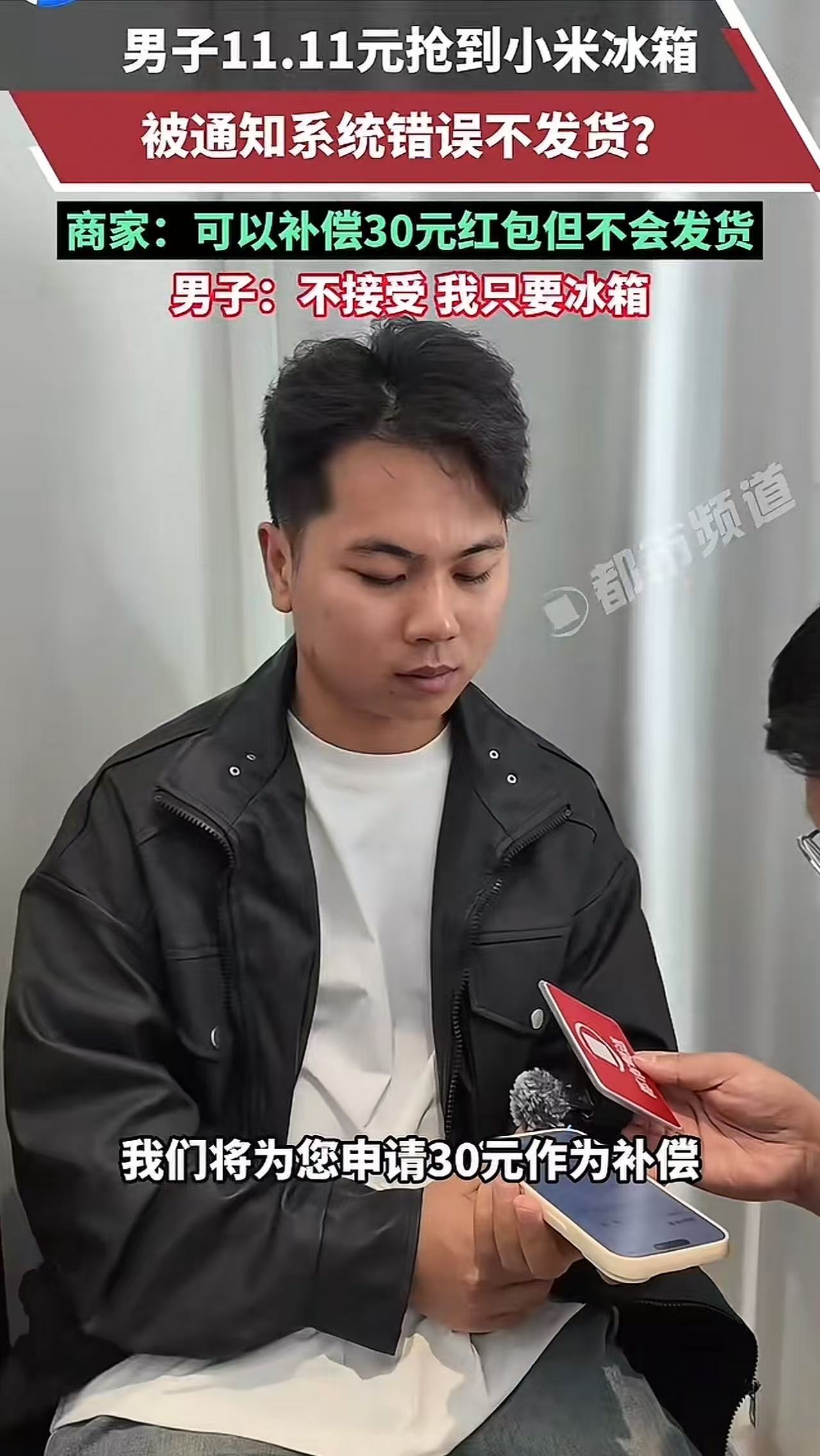 河南,男子花 11.11 元秒杀小米冰箱,付款成功后不发货。店铺:系统配置错误,给你 30 元红包!男子:把我当要饭的? 网友:小米,你们内部是有内奸吗?11块秒杀冰箱不给发货,这是这么大公司能做出来的事儿吗?