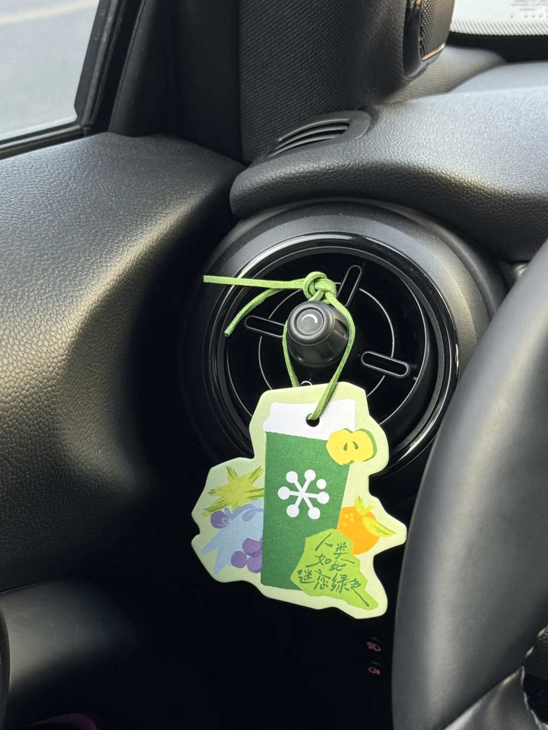 蔬菜味、马鞭草味两个味道的香氛卡直接挂车上~闻着真的很清新,感觉心情都变好了!