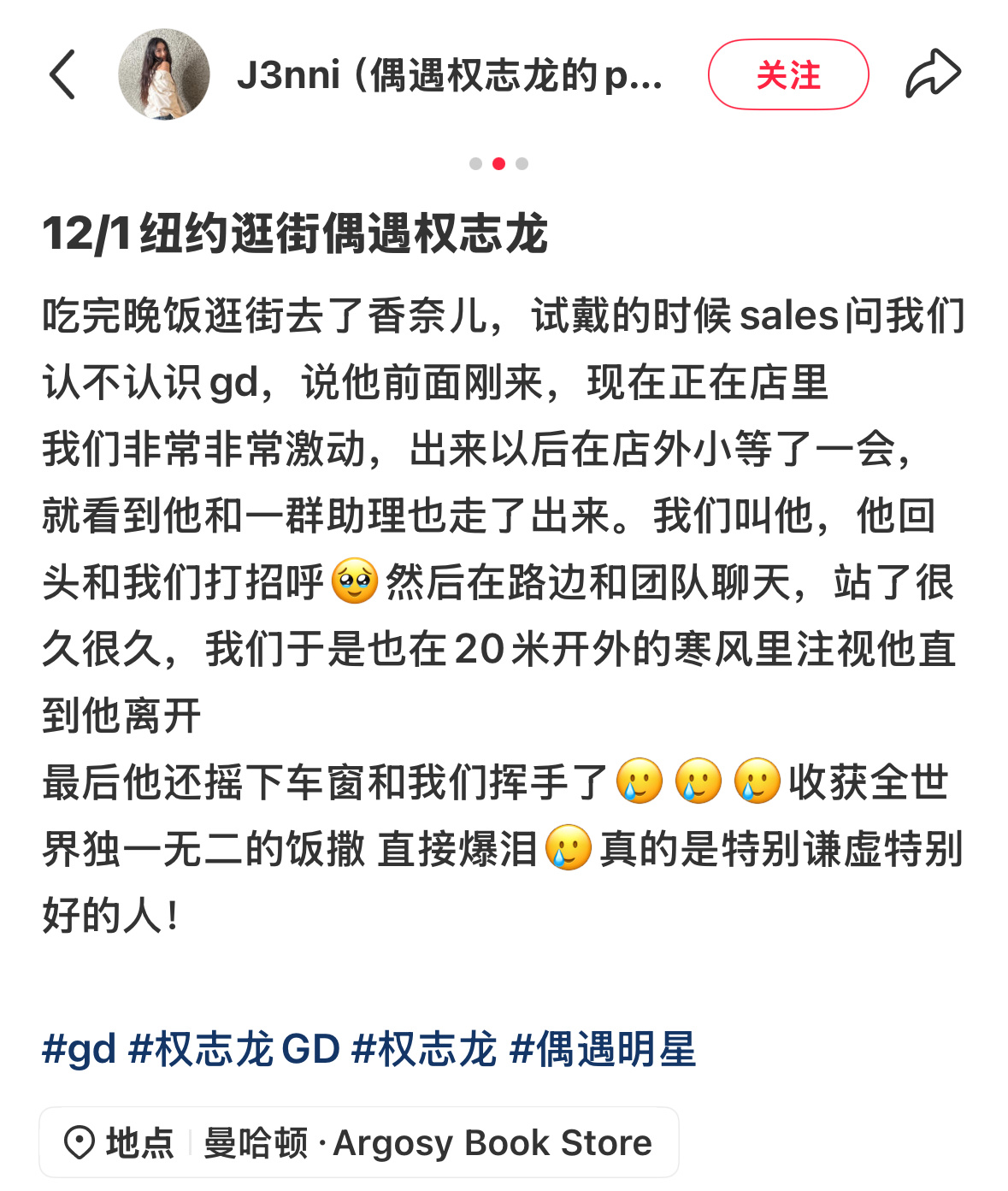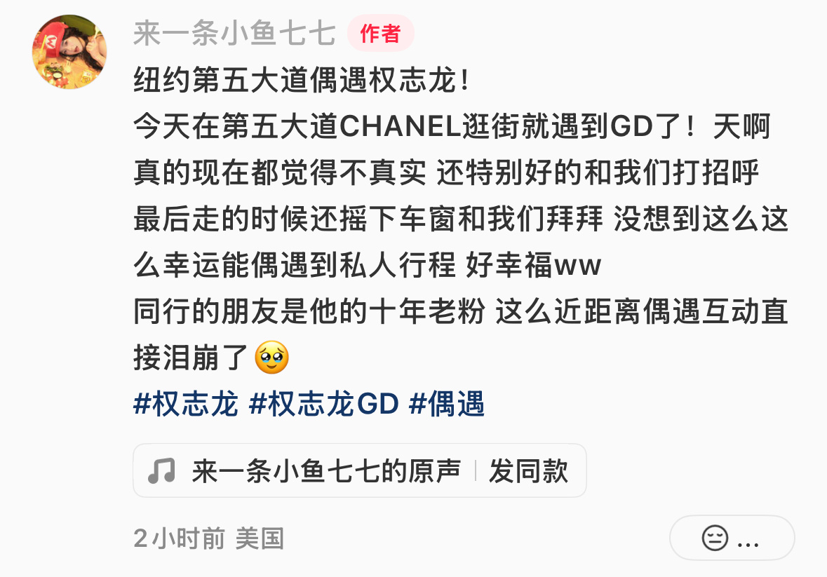 网友在纽约逛街偶遇权志龙,欧巴站在街头和团队聊天,听到网友喊他还回头打招呼,走的时候还摇下车窗和大家挥手拜拜🥹纽约偶遇权志龙