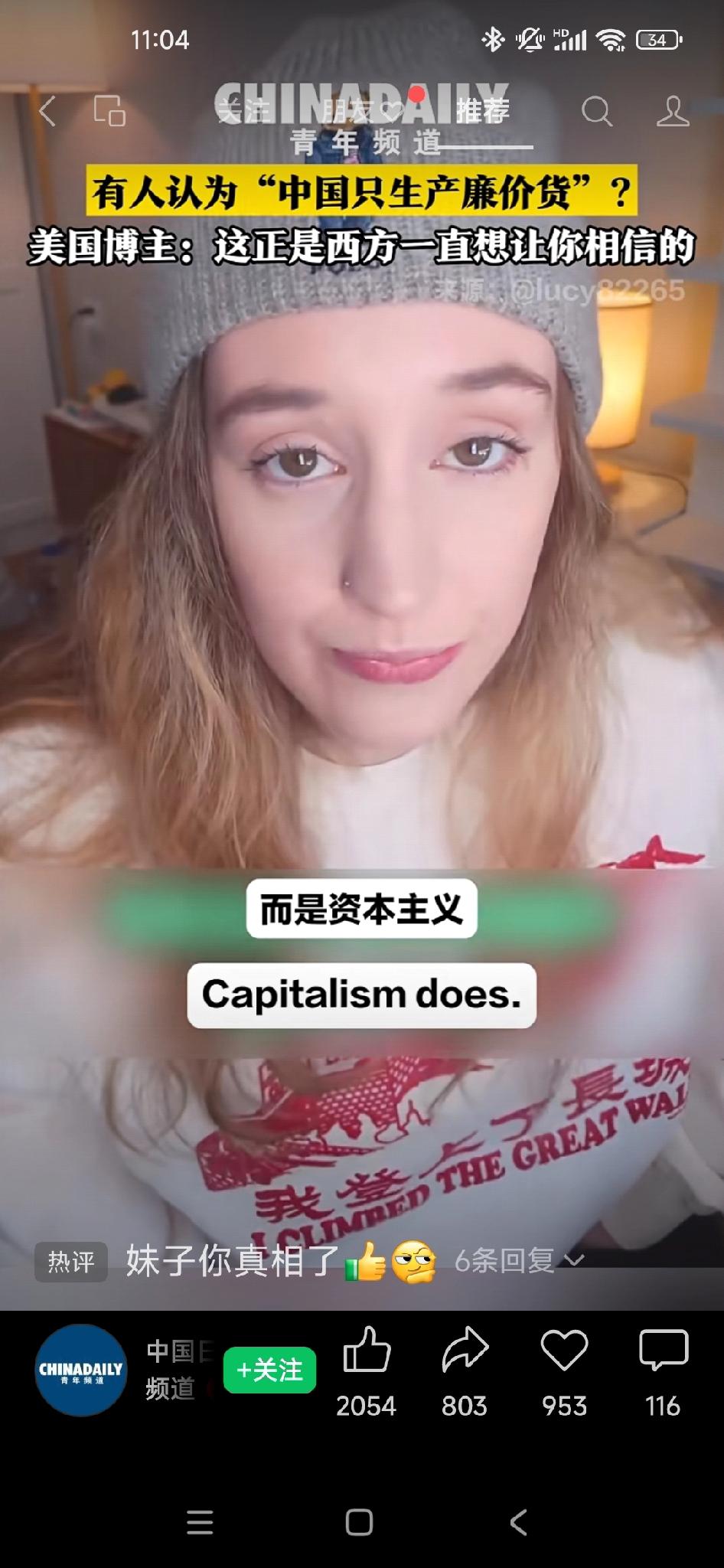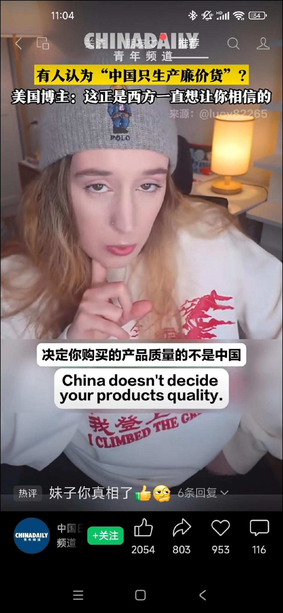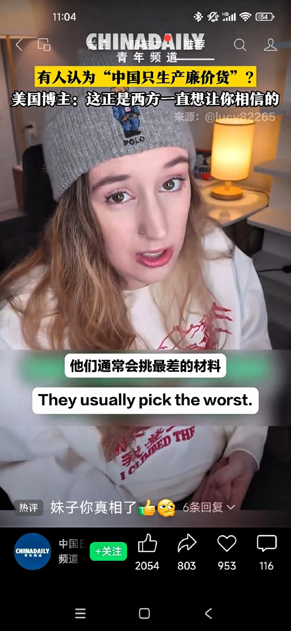美国博主:这正是西方一直想让你相信的!妹子,你真相了! “中国只生产廉价货“,这一直是西方想让你相信的。 今天我来告诉一个小秘密。 其实是你买东西的那些公司,在采购廉价货。 他们设计产品时,可以选择用什么材料,可以选择最好的,也可以选择最差的。 你猜怎么着?他们会选择最差的材料。 原因是便宜的材料意味着更高的利润。 他们把生产外包给中国,加价500%,产品坏了又怪中国。 这时候他们会说,一分价钱一分货,但真正定价的人是他们,偷工减料的决定也是他们做的。 我尝试过很多中国制造的产品,他们质量很好。 我也用过中国各种科技应用。 他们真的很创新,非常好用。 中国的应用软件也在持续更新迭代。 以后如果你再听到“中国制造就等于质量差”这样的话,问问自己,到底是谁在偷工减料?到底是谁在从中谋利? 决定你购买产品质量的不是中国,而是资本主义! 编者:这位美国朋友,她脑子太清晰了,她太懂了,她把谎言真相了!大家怎么看呢?
