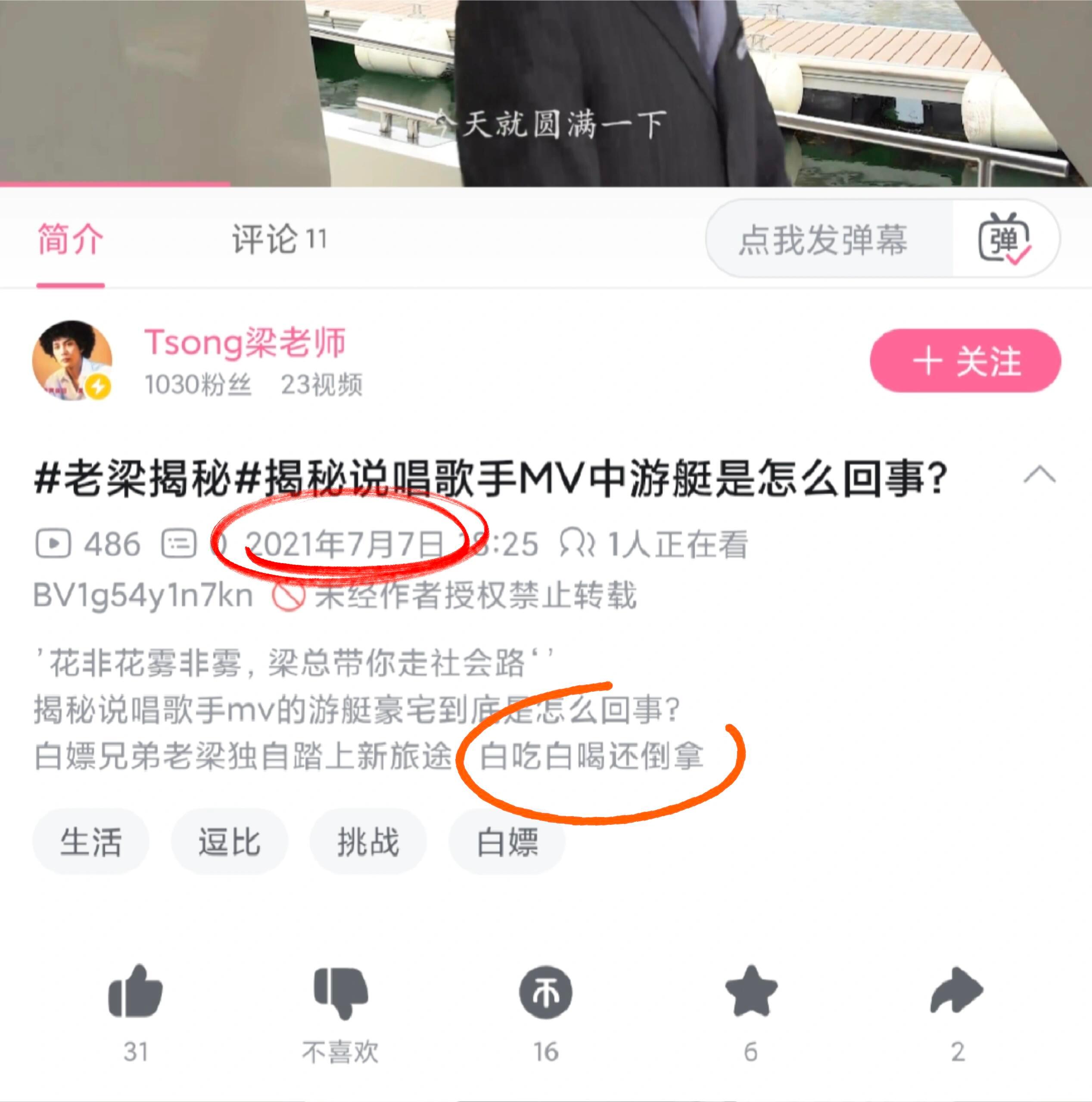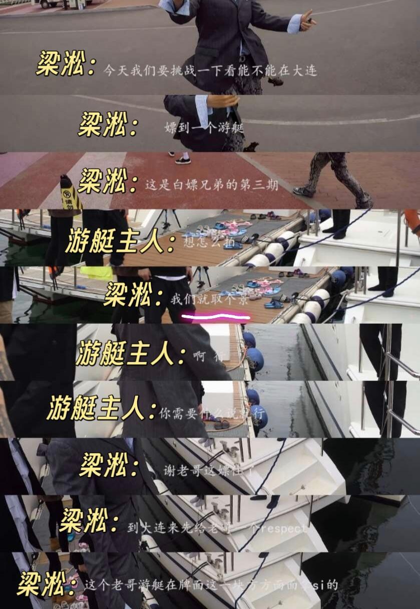 梁以前白嫖前,不是会先问别人意见的吗白嫖游艇拍摄的时候问了游艇主人,人家同意拍摄再次感谢,然后去拍怎么上了节目就变成先斩后奏了?以前的礼貌在节目组不存在了?视频来源,B站他自己的账号