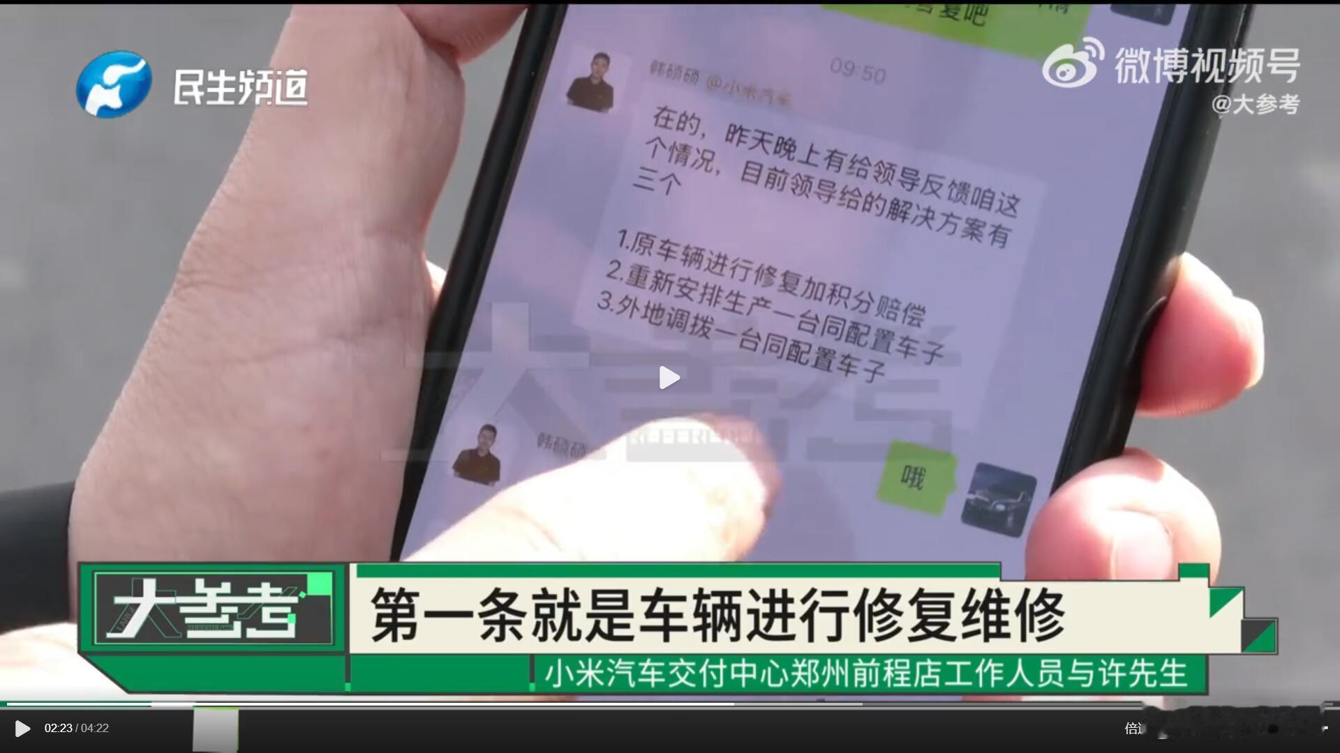 看了下来龙去脉,这辆小米YU7有可能是从出厂到运抵交付中心的过程中,出现了磕碰?等了小半年的车,结果有个坑,换成谁心里都不太爽,这事儿就看怎么解决了。目前的消息是,小米给出了3个方案:一个是原车修复,并送1万积分补偿;一个是重新安排生产一辆同配置的YU7;还有一个就是外地调拨一辆同配置的YU7。但车主的意思就是:都不接受,要求小米退还定金。那大家说说,车主的这个要求过分吗?懂法律的人可以来讲讲,这事儿里小米要承担什么责任?男子买小米YU7收到运损车退定被拒小米回应男子买小米YU7收到运损车