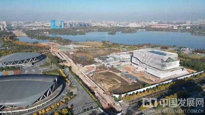 智慧综合能源站管线在土建阶段就已预埋,未来将以湖海塘湖水为主要冷热源,为片区集中供能。在施工现场,技术团队相关负责人介绍,区域集中供能可使每户年省电费1/3,片区年减碳9700吨——相当于种植1100亩阔叶林。