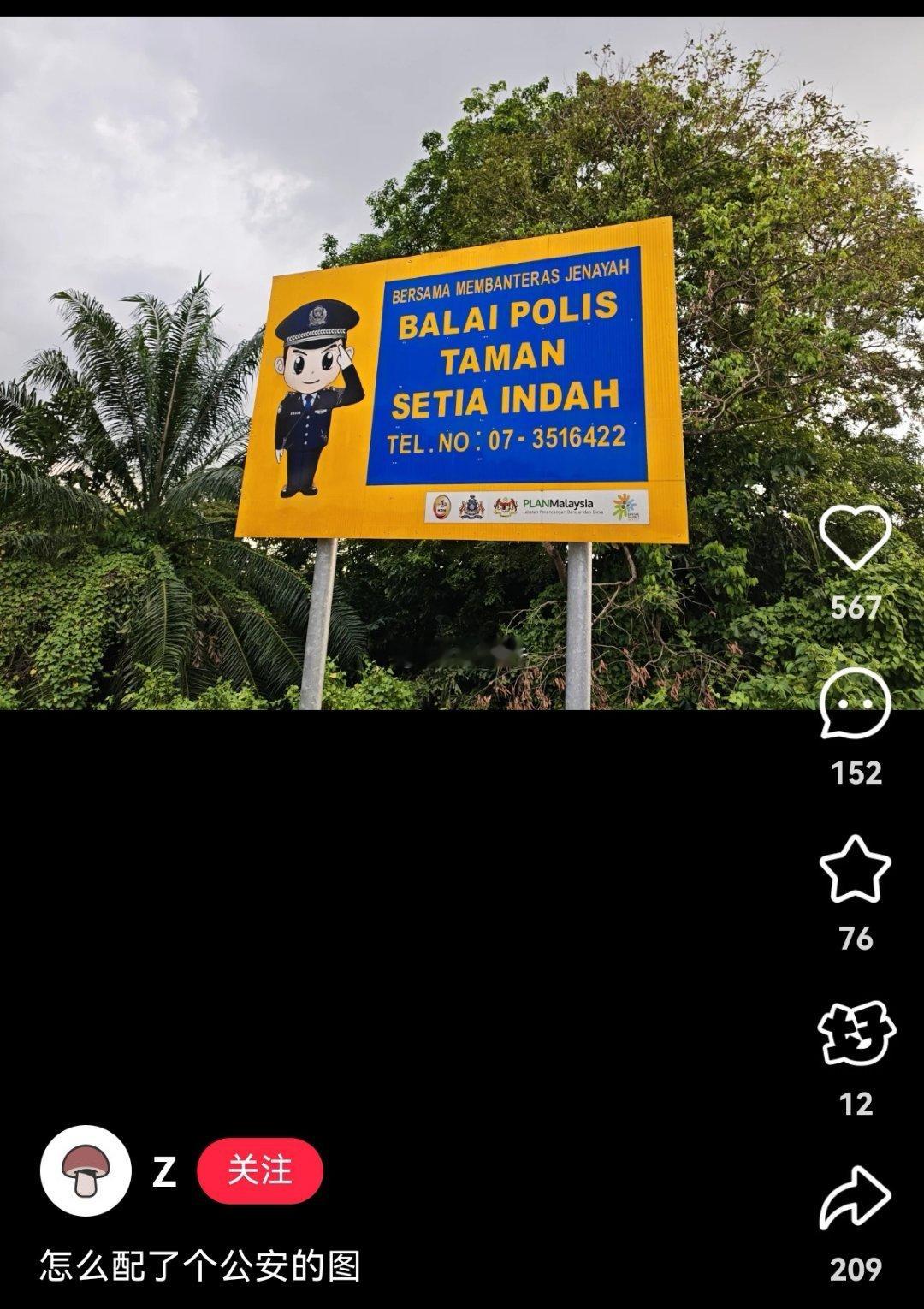 马来西亚警方标语牌,居然用了中国公安的卡通形象。