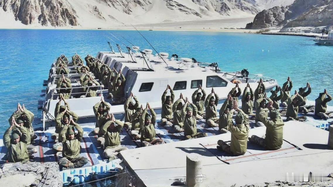印军在班公湖部署新型支援艇,旨在提升高海拔湖区的兵力运输与巡逻能力。 图片看,快艇到了,阿三先在上面做起了瑜伽,这动作怎么感觉像是投降
