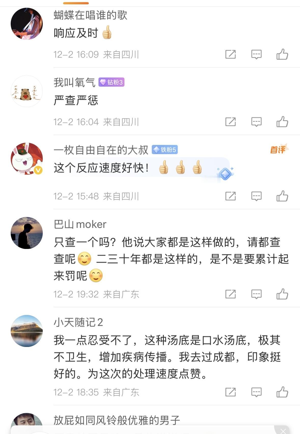 【情况通报】成都市锦江区市场监督管理局12月2日发布情况通报:针对12月2日网传街边串串摊贩重复使用锅底汤料问题,我局高度重视、赓即开展调查核实。情况属实,当日严肃处理!