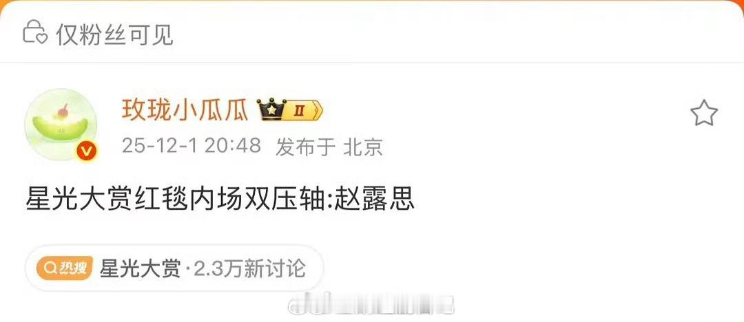 星光大赏红毯内场双压轴:赵露思😯 腾讯2025VIP之星站位都出来了 哇哦,这要是真的腾讯星光大赏活动赵露思排面拉满啦。