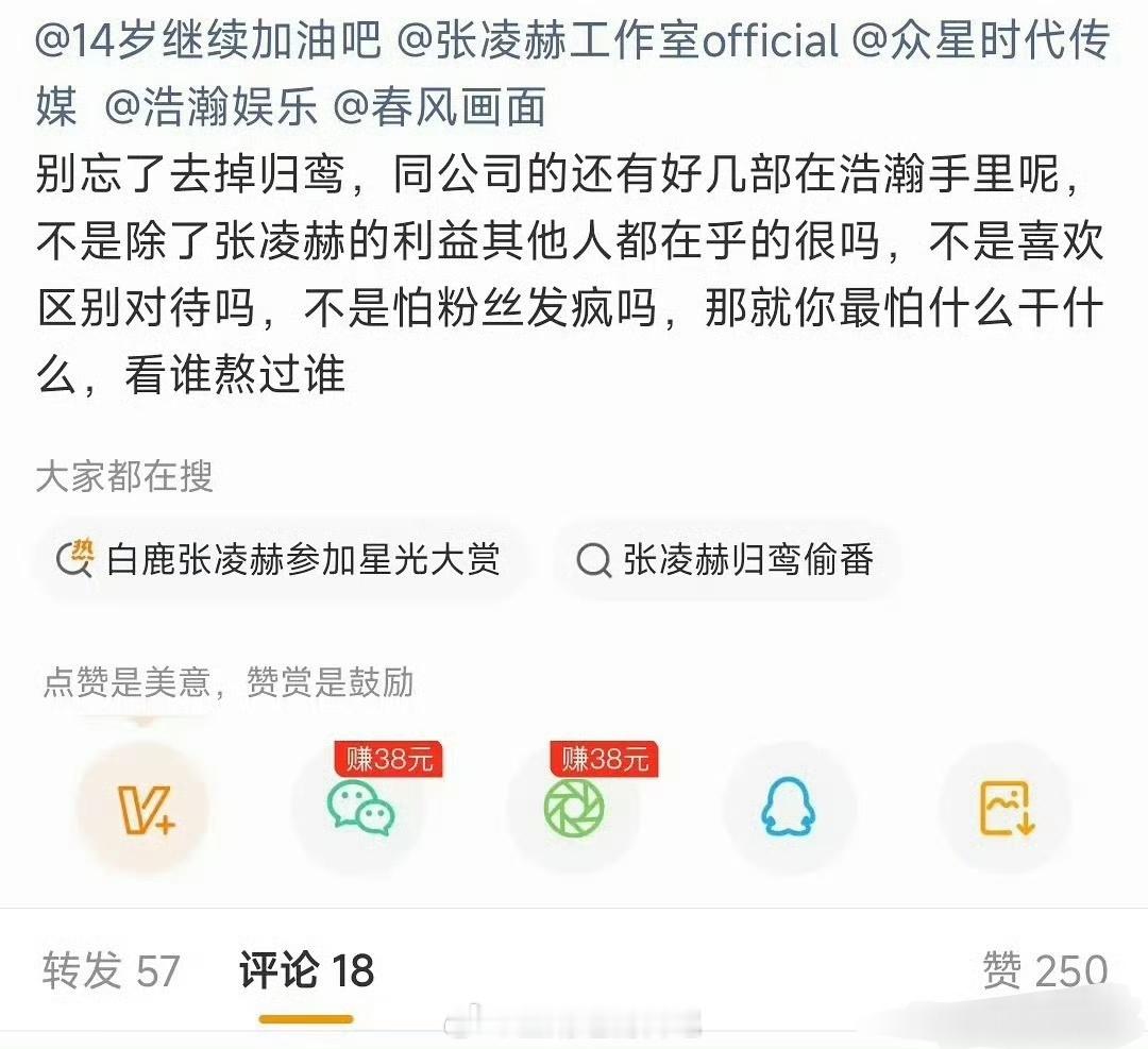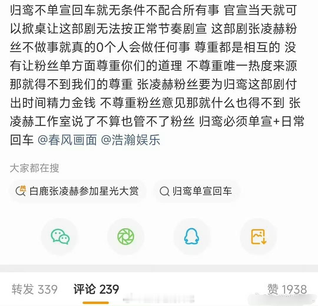 凭张凌赫的流量和实绩要求《归鸾》单宣+回车也是合理的吧