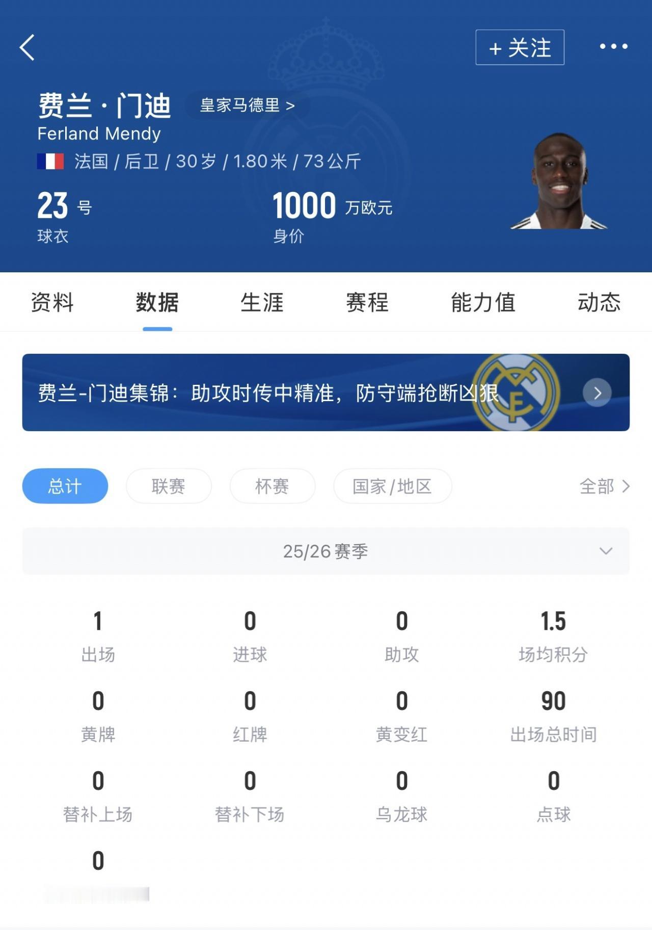 官方:费兰·门迪股二头肌损伤,具体情况待观察。 12月02日 皇马官方:费兰·门迪右腿股二头肌损伤,本赛季仅出战一场!具体情况有待进一步观察