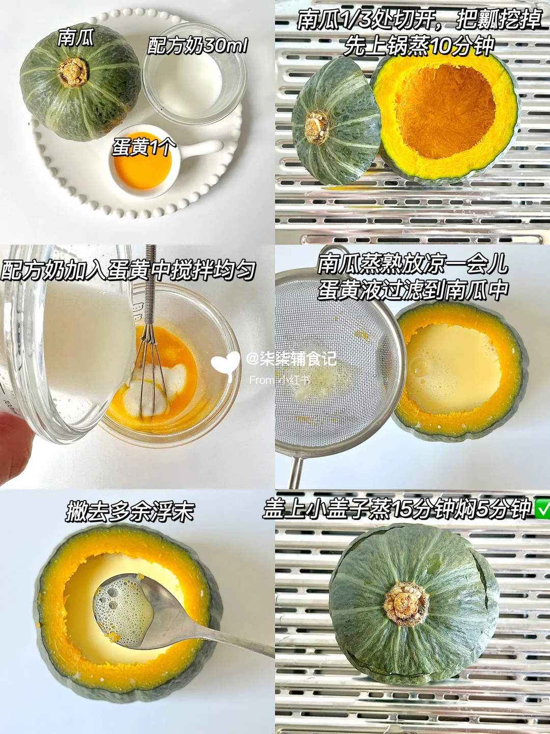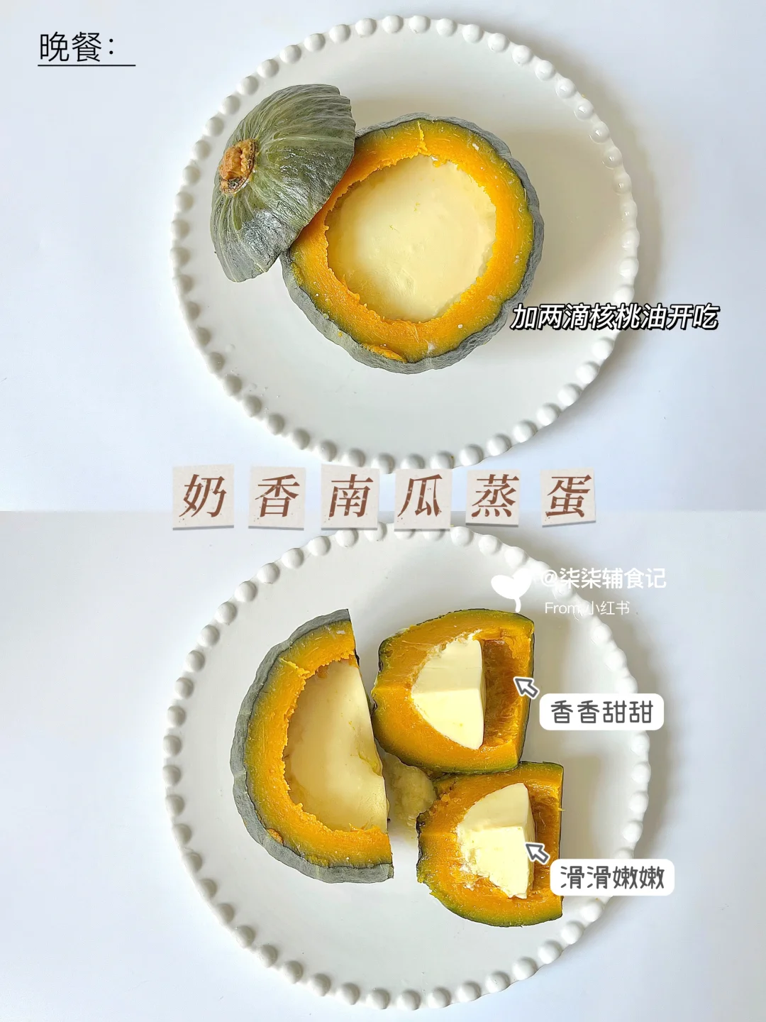 晚餐奶香南瓜蒸蛋,全部吃光光啦!南瓜肉也吃了,就没有给柒柒准备其他食物,一整个南瓜吃下来也挺多的。(南瓜没有很大,选了一个最小个的)