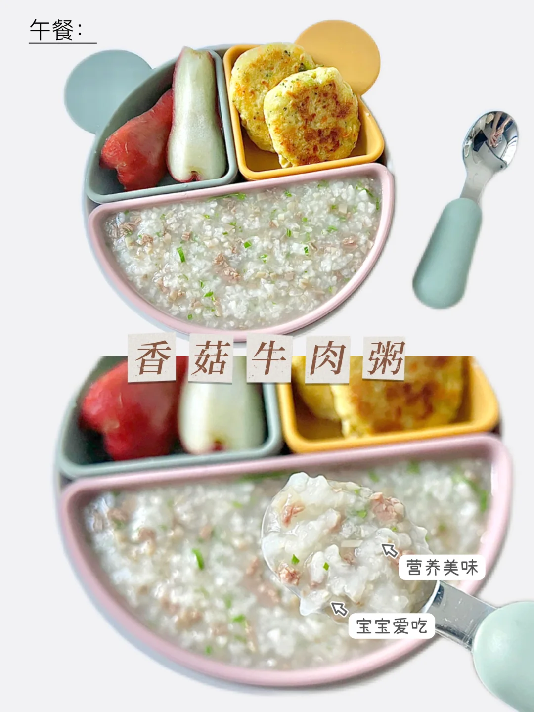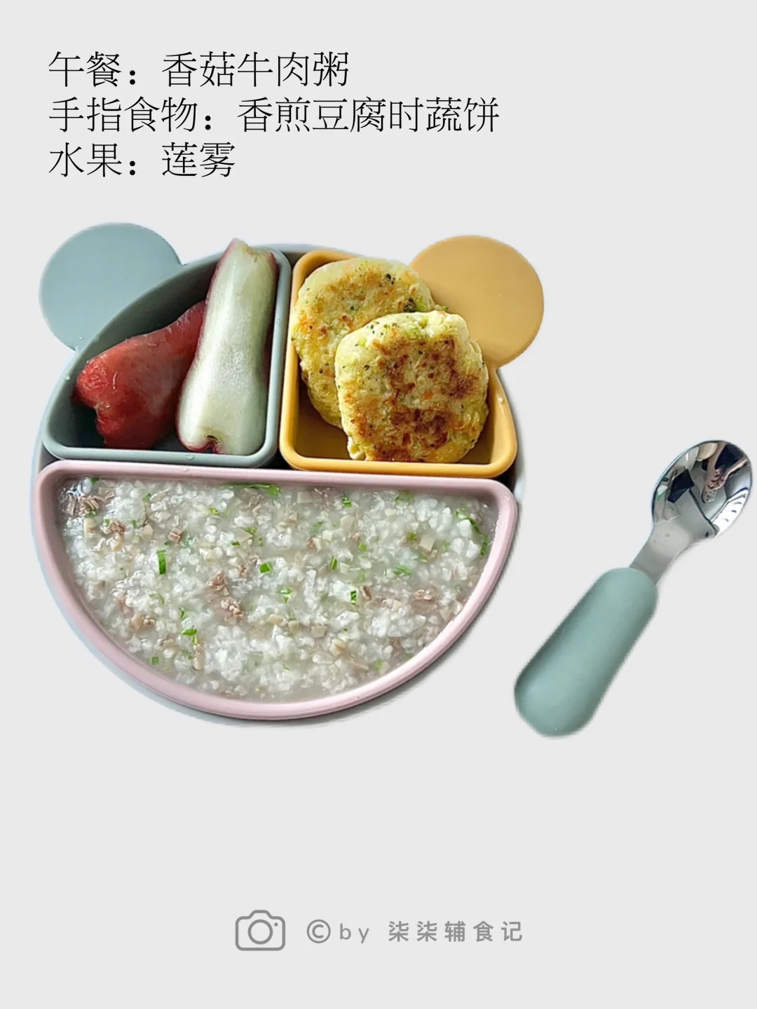 午餐香菇牛肉粥和豆腐煎饼,粥全部吃光光啦!豆腐饼吃了1块,剩下的被我炫完了哈哈自己沾点番茄酱吃还不错哦😌