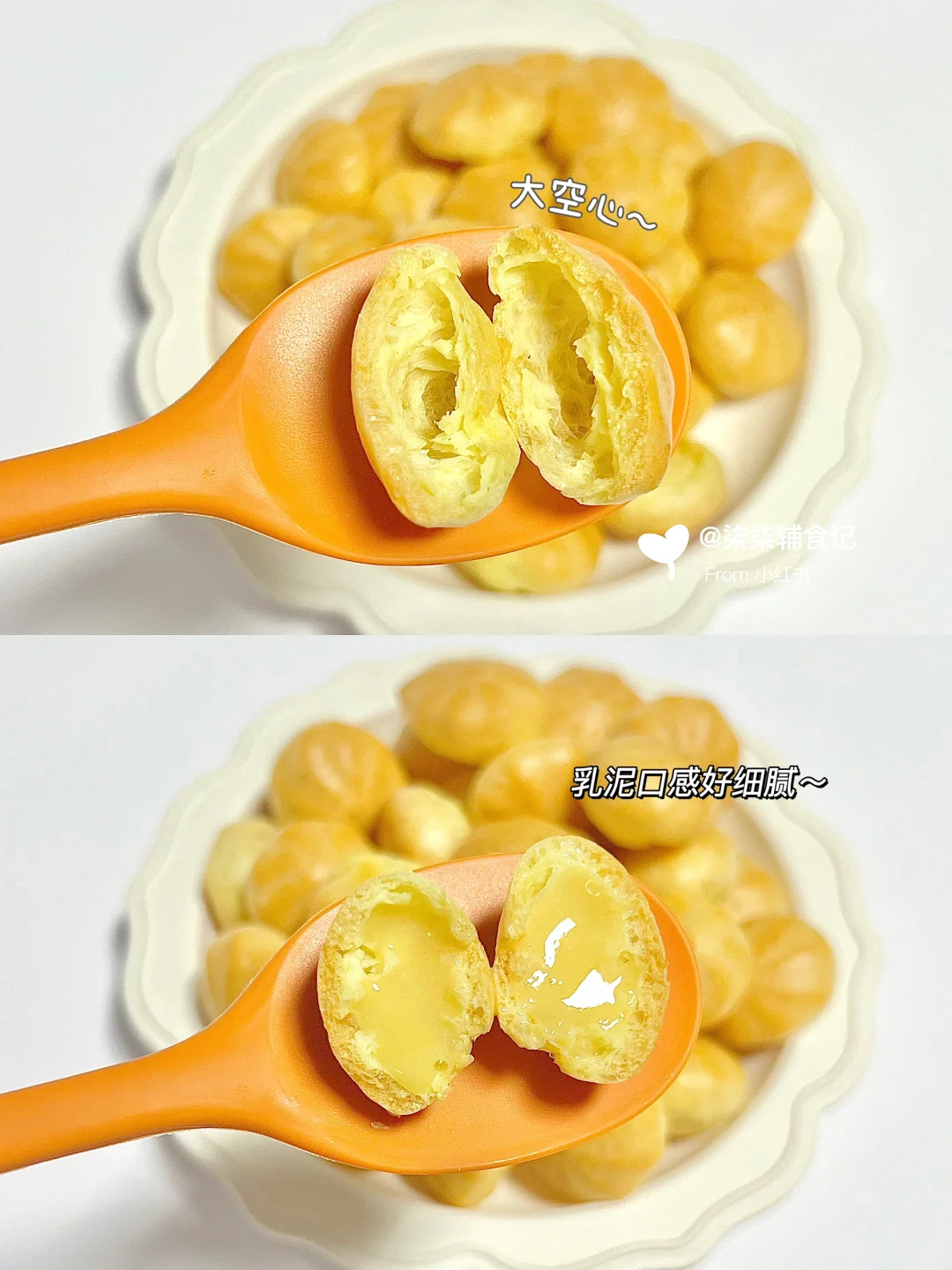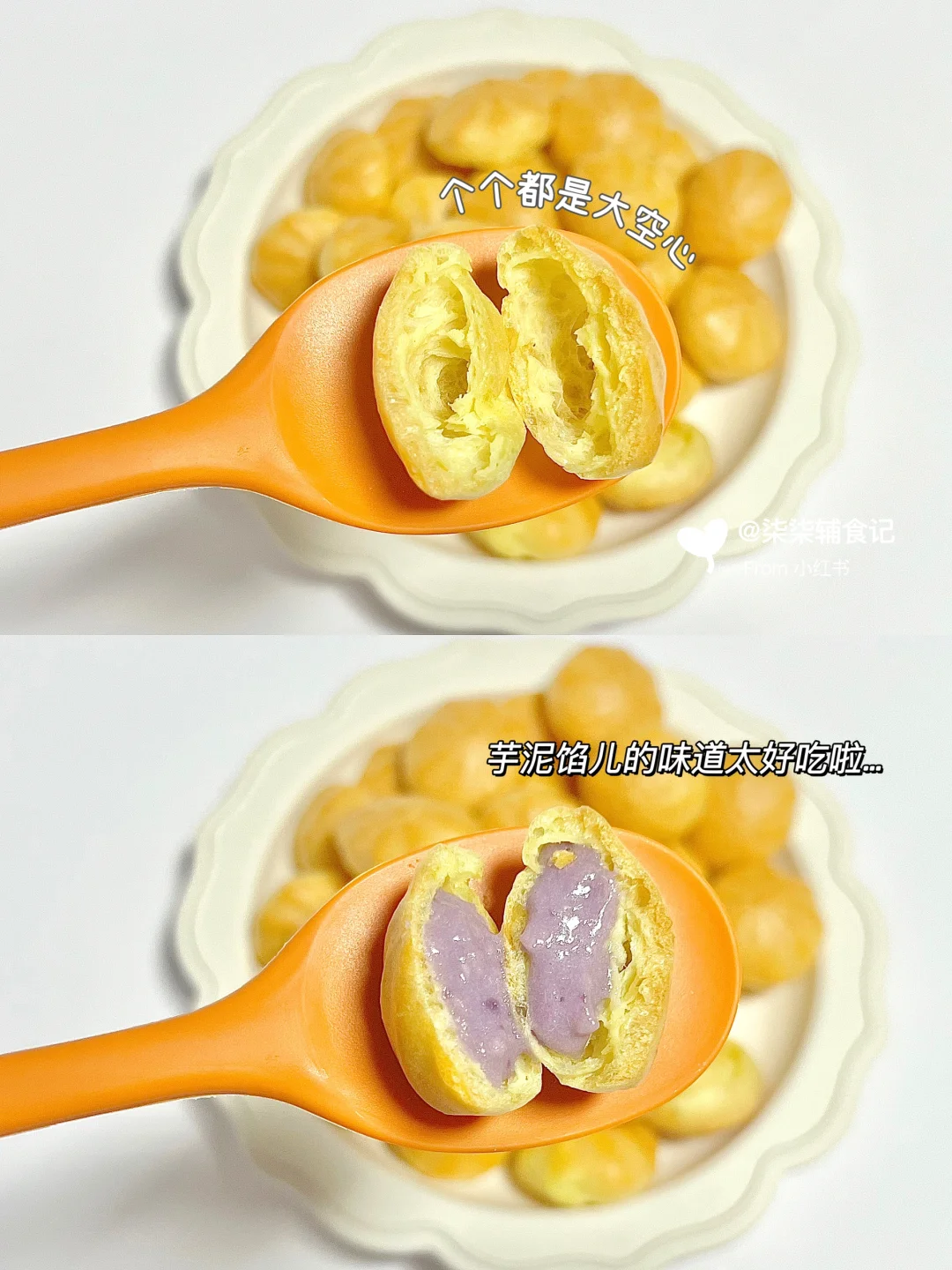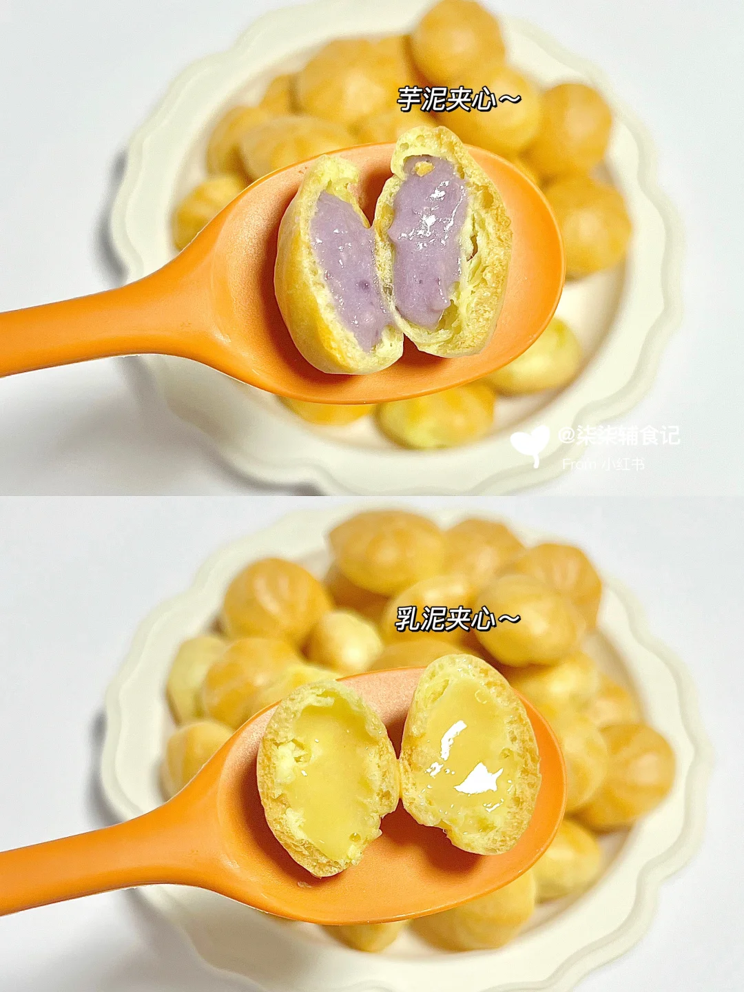 夹心小泡芙,无糖无盐低油,太适合小朋友啦~芋泥、乳泥馅儿柒柒太喜欢了💕