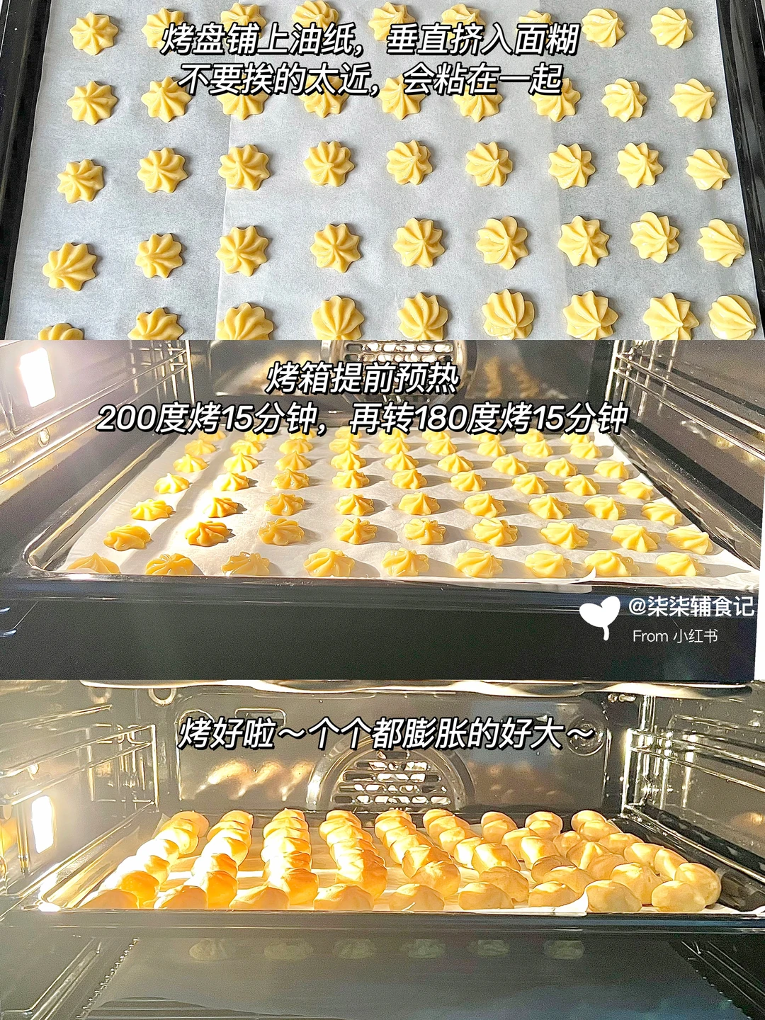 ▫️面糊装入裱花袋中,用8齿裱花嘴