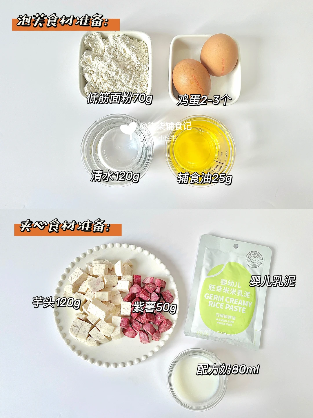 乳泥夹心泡芙用的是原田町即食胚芽米米乳泥,婴标产品,口感细腻好吸收,健康无添加,适合6月龄以上宝宝,有原味、蔬菜味牛肉味可选。平时出门也方便携带。