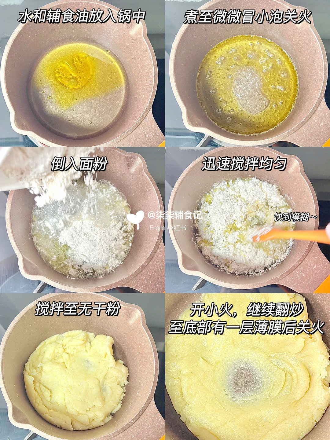 ▫️水和辅食油放入锅中,烧至微微冒小泡关火