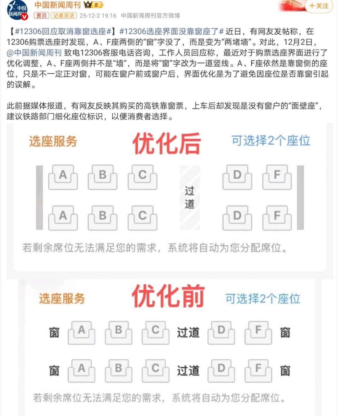 12306回应取消靠窗选座感觉这个修改重要性不怎么大,个人建议不如优化一下抢票这块,每次大型的节假日都很难抢到票,而且还会出现座位没坐满,票却没有的现象
