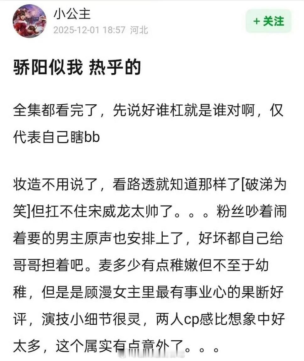 《骄阳似我》最新repo:宋威龙太帅了,原声台词也安排上了;赵今麦演技小细节很灵,两人cp感比想象中好太多