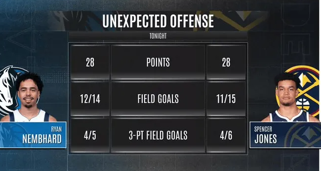 昨日NBA常规赛,独行侠客场以131-121战胜掘金。 此役,独行侠后卫瑞安-内姆布哈德发挥出色,拿到28分3篮板10助攻。 掘金前锋斯宾塞-琼斯同样有亮眼表现,拿到28分5篮板。 根据美媒报道:独行侠对阵掘金的比赛中出现了一场我们未曾预料到的正面交锋。